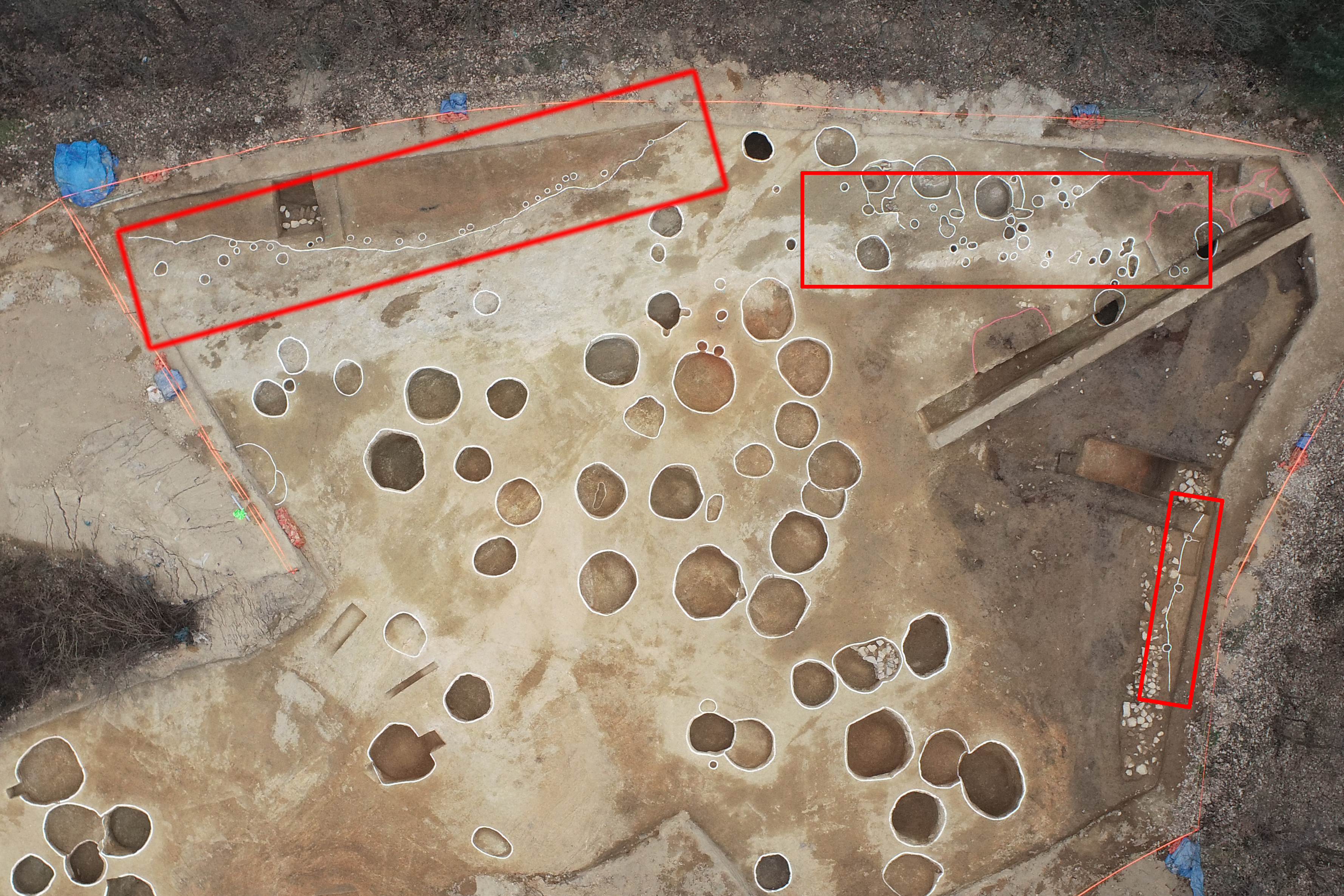 현재까지 56곳이 드러난 원형수혈은 대체로 위가 좁고 아래가 넓은 단면 플라스크형. 상부 직경을 기준으로 크게 150~180㎝ 내외 규모와 220㎝ 이상 규모로 대별한다. 평면 배치에서는 규모에 따른 구분이 확인되지 않고 혼재한다.