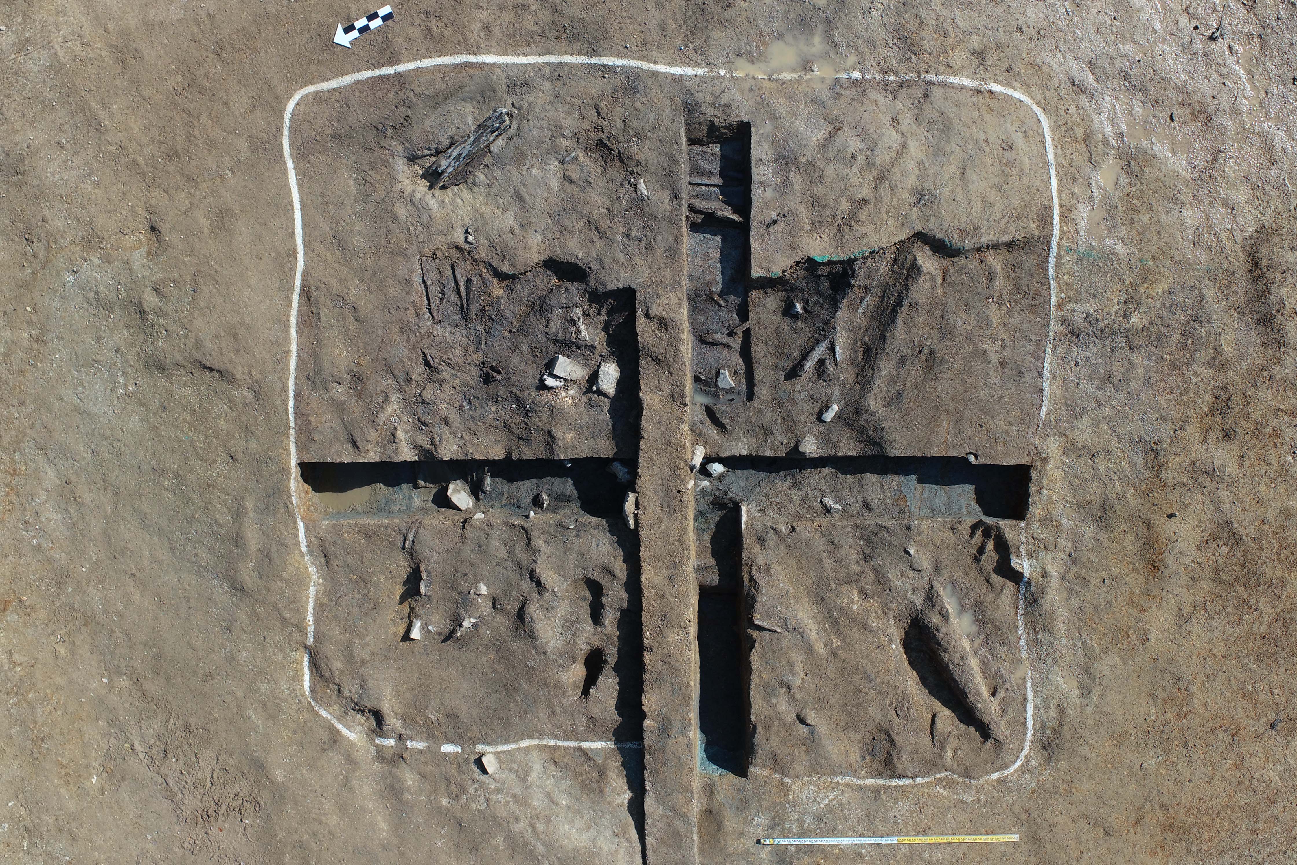 두께 약 15㎝ 이상 방형 각재를 포함한 목재가 다량 노출되는 점으로 보아 목곽 상부구조를 이룬 들보梁木 등이 존재했을 것으로 판단한다.