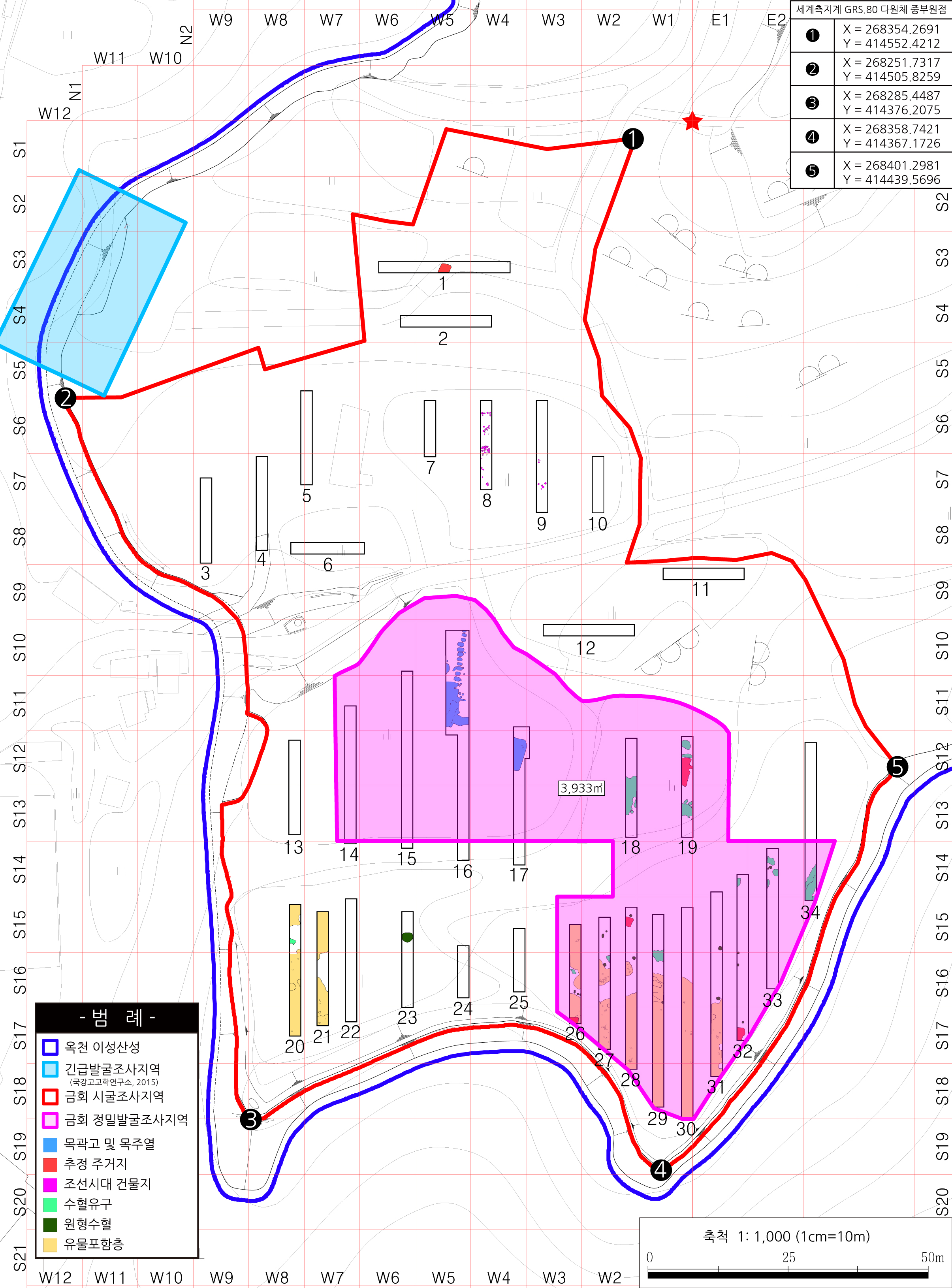 - 산성 서벽 중앙부 훼손이 심한 25m 구간 발굴조사(조사면적 800㎡)