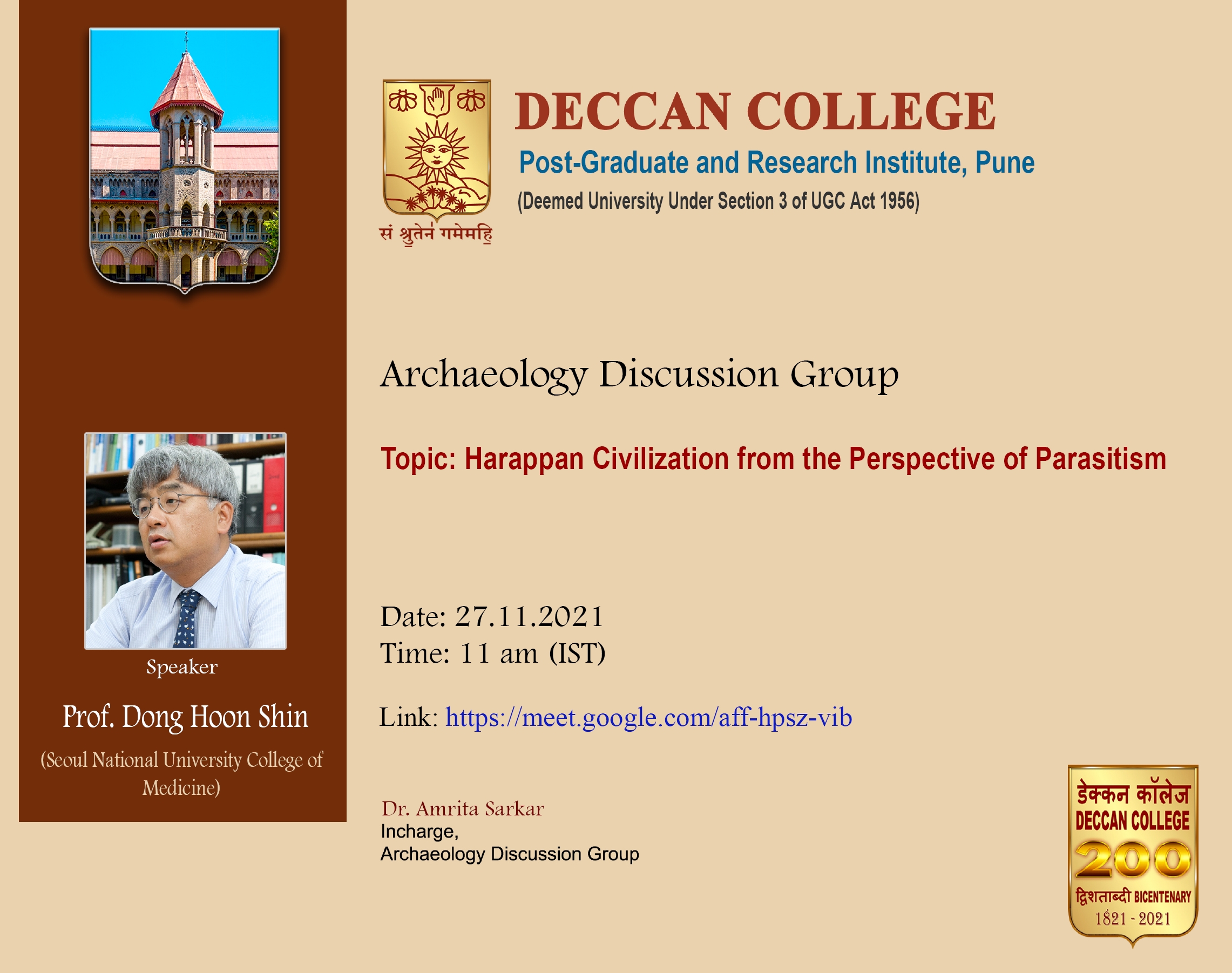 인도데칸대 고고학부 초청으로 아래와 같이 온라인 강의를 하게 되었습니다.