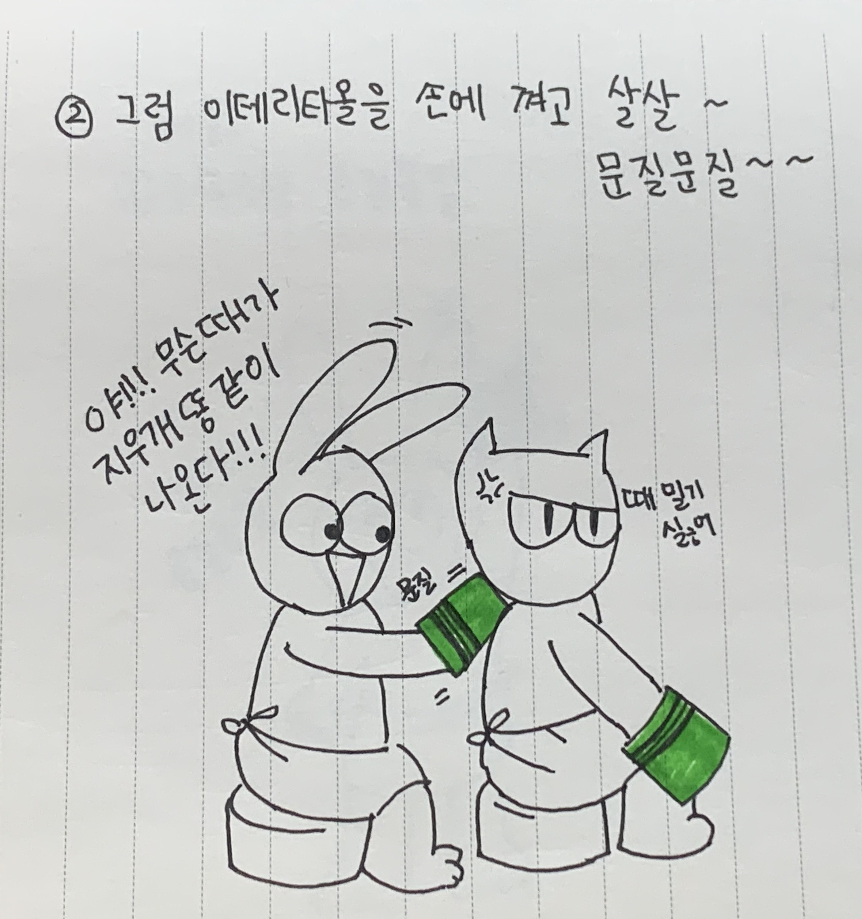 다음으로 이태리타올 사용법을 시각화해야겠는데 이걸 우짜지 하다간 여송씨한테 sos를 쳐서 이차저차하니 좀 그려주라 했거니와