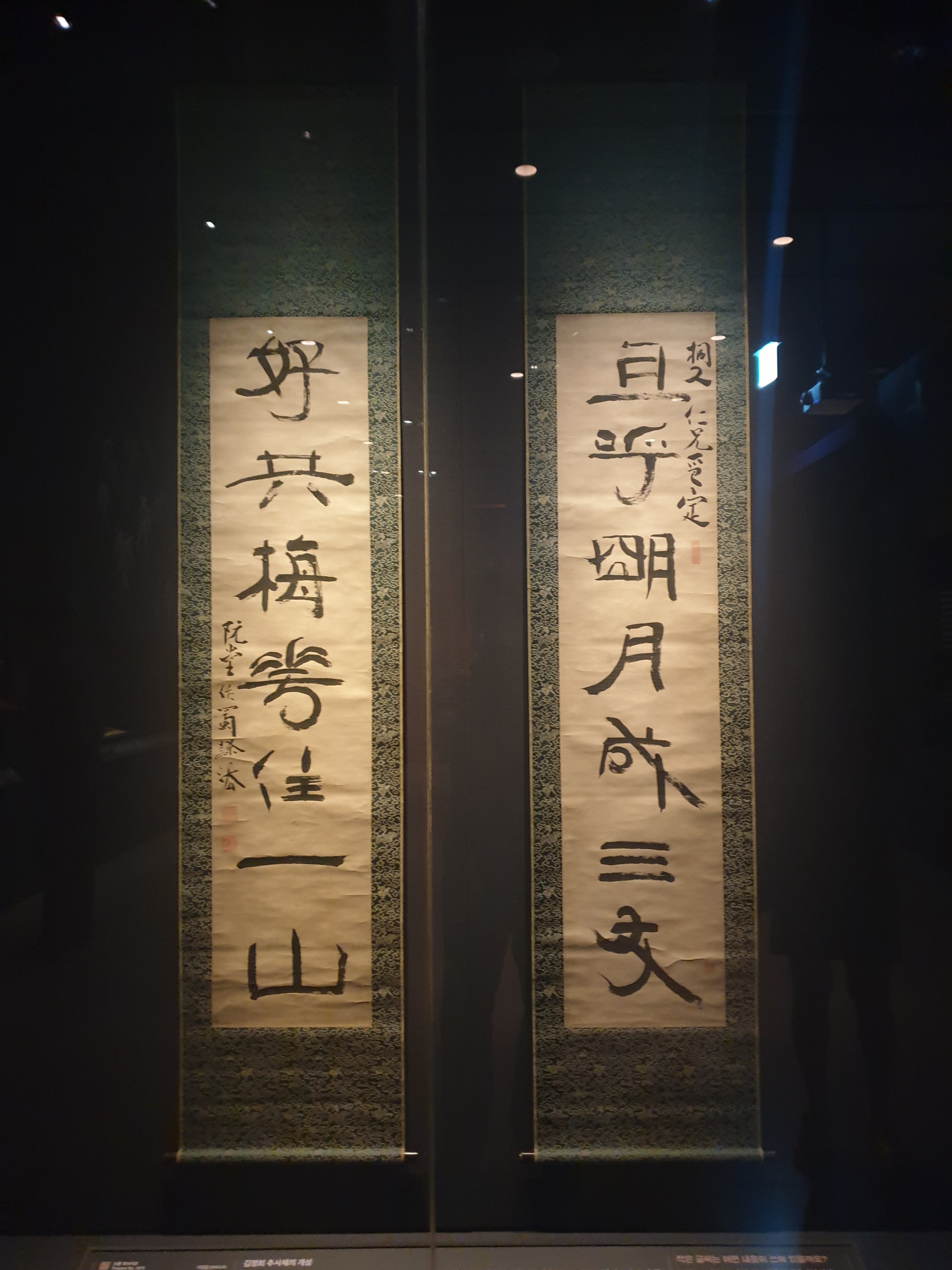 모처럼 국립중앙박물관이 문화재청이랑 꾸며서 그 특별전시실에서 개막한 보물 납시었네 특별전 출품작 중 완당 대련이다.