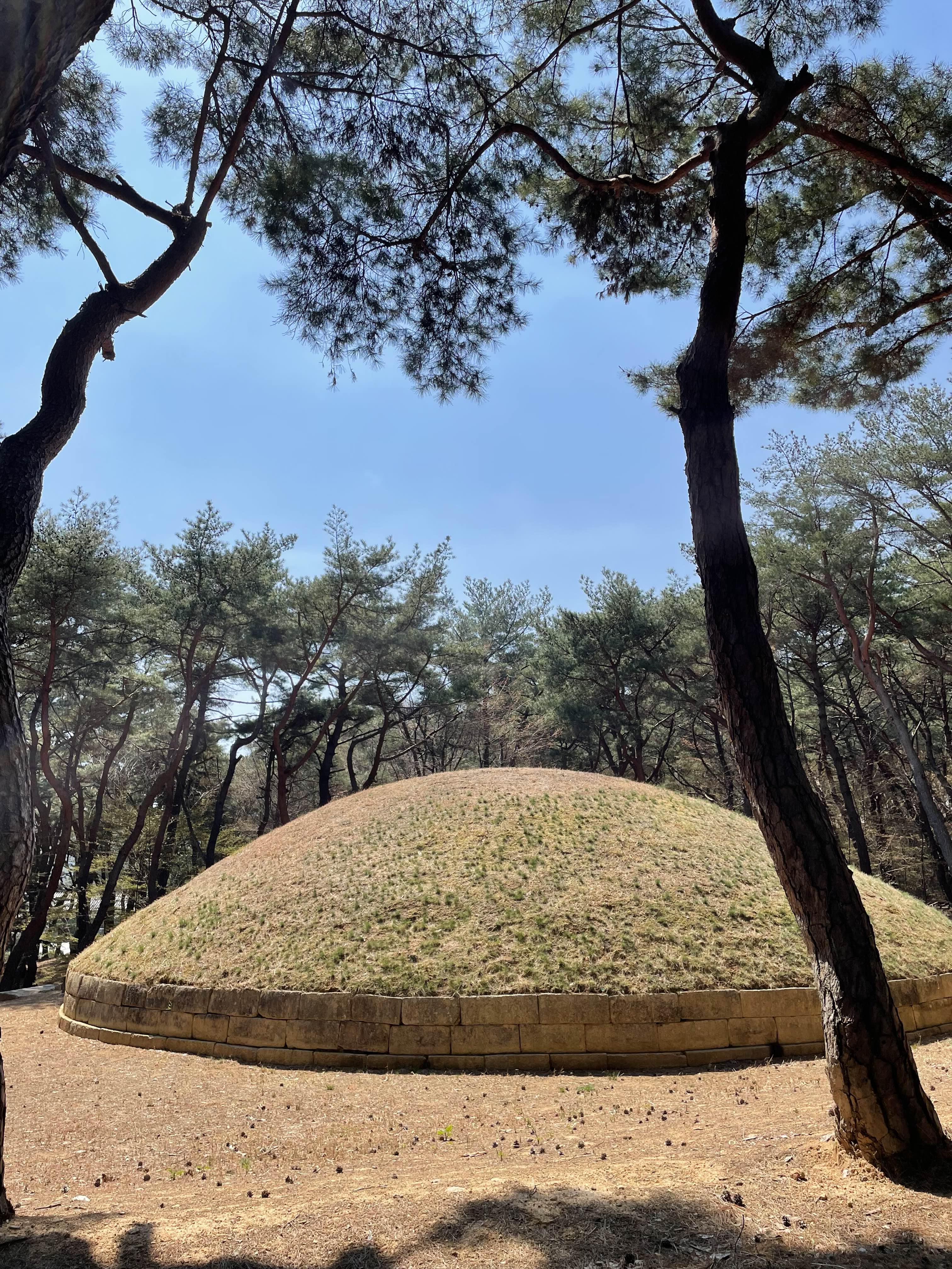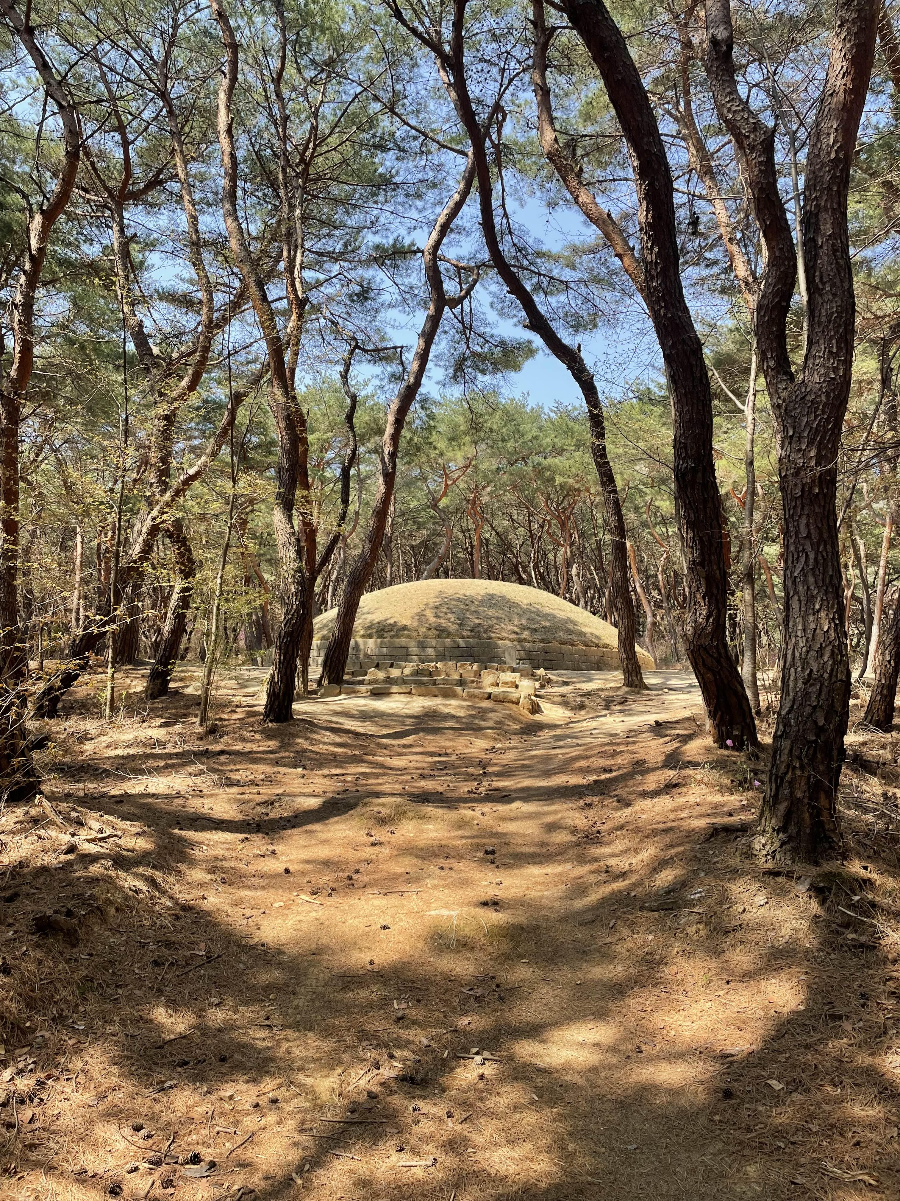 왕릉 뒤편을 보니 소나무 사이사이로 연분홍 진달래가 피어 있었습니다.