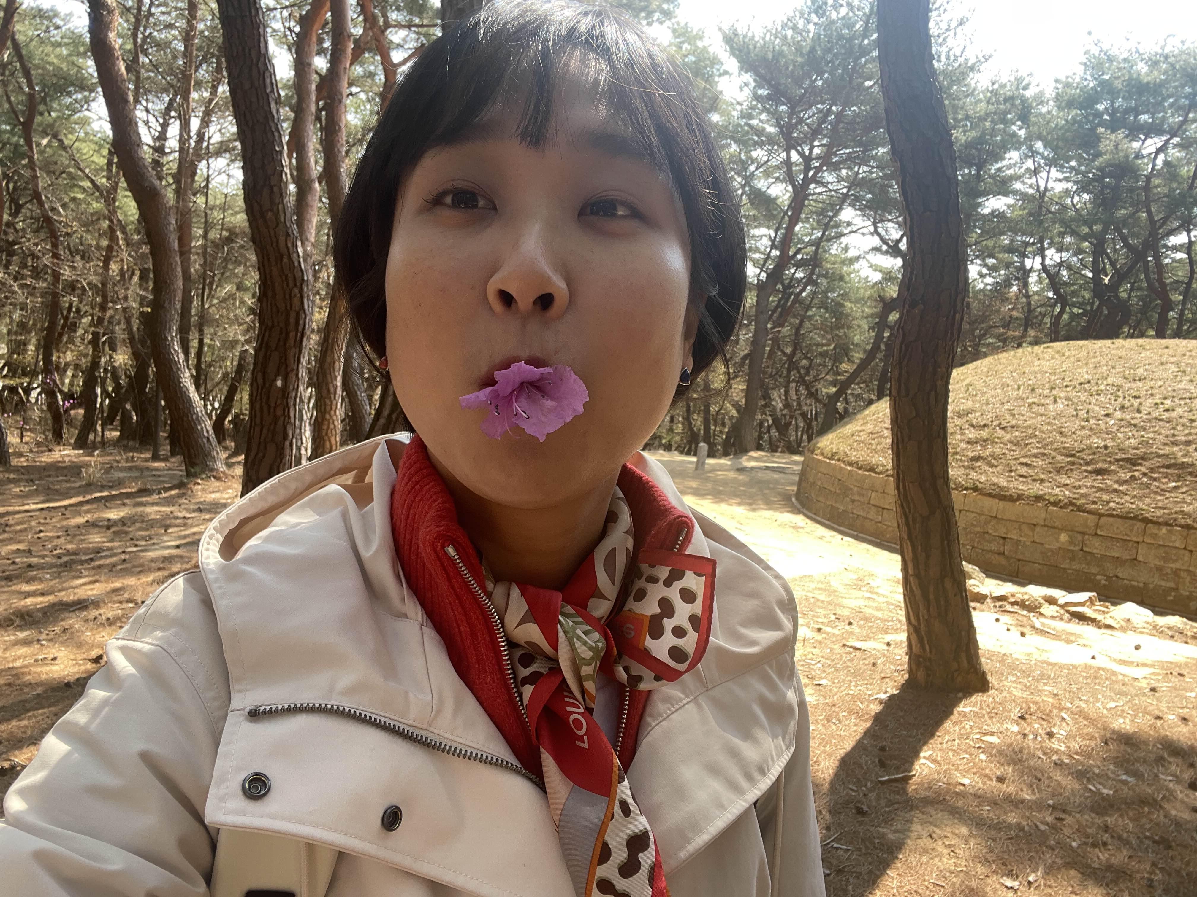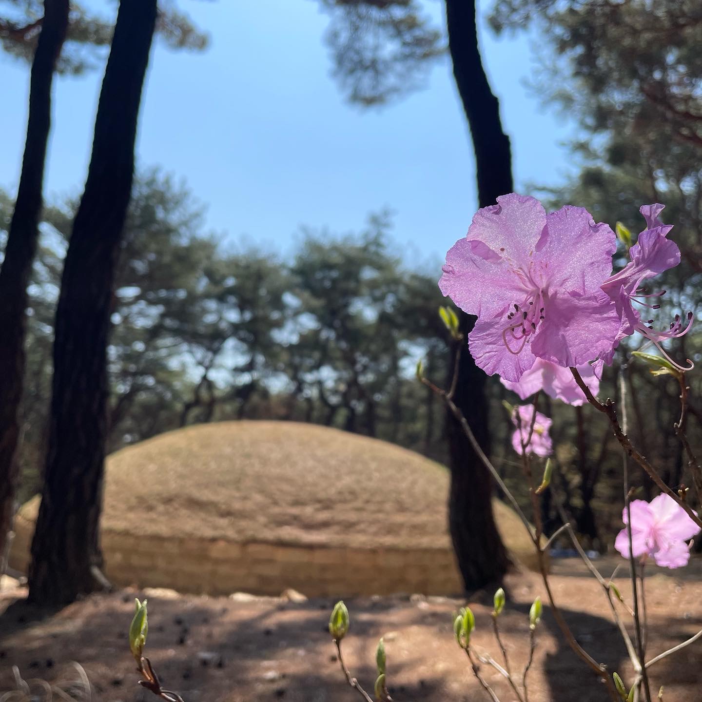 왕릉 뒤편을 보니 소나무 사이사이로 연분홍 진달래가 피어 있었습니다.