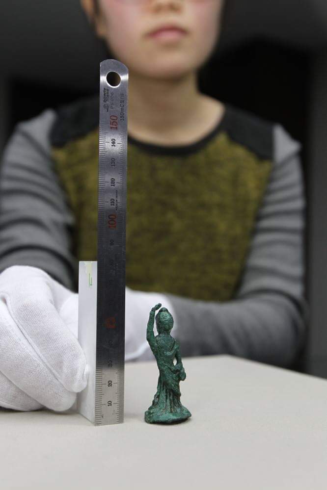 bronze figurine excavated from the site of Wangheungsa Temple (王興寺, 왕흥사), Buyeo, Korea