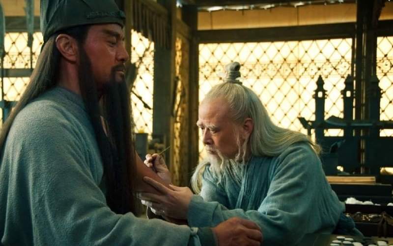 의원이 “화살촉에 독이 있어 독이 뼈속으로 들어가 팔을 가르고 째서 뼈를 긁어내 독을 제거해야만 이 상처를 완전히 없앨 수 있습니다.”라고 하자 관우가 바로 팔을 펴서 의사에게 가르게 했다.