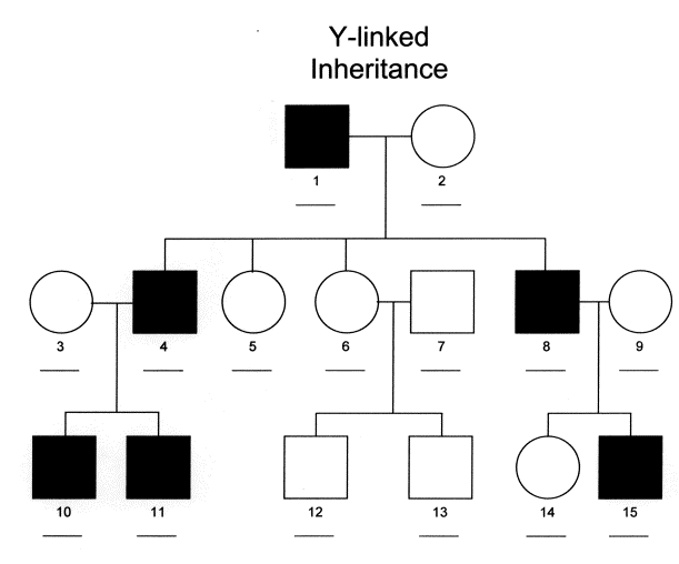 이 집단안에서 1번 4번, 8번, 10번, 11번, 15번은 같은 조상 1번에서 전달받은 Y 염색체를 가지고 있는 사람들이고,