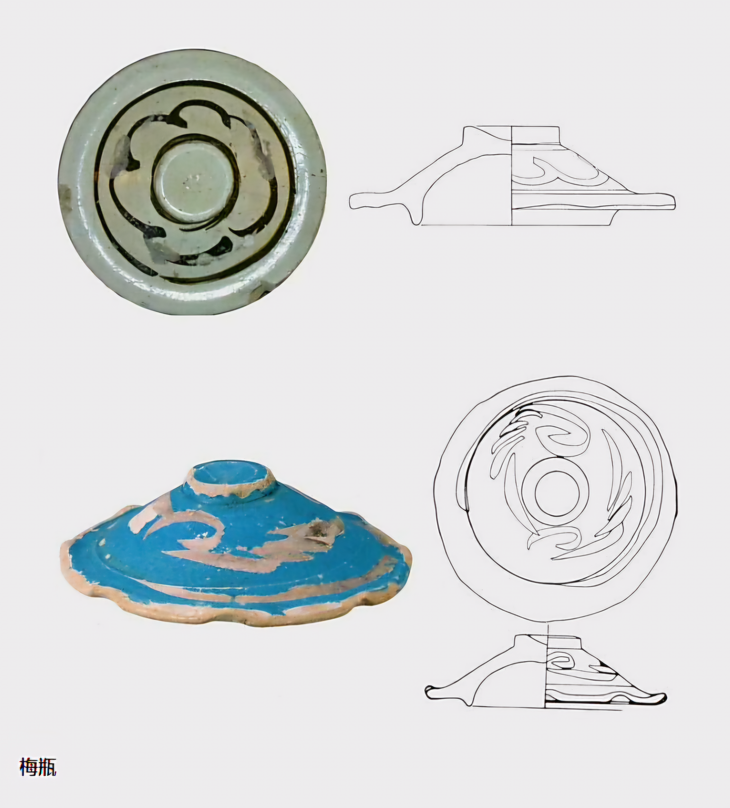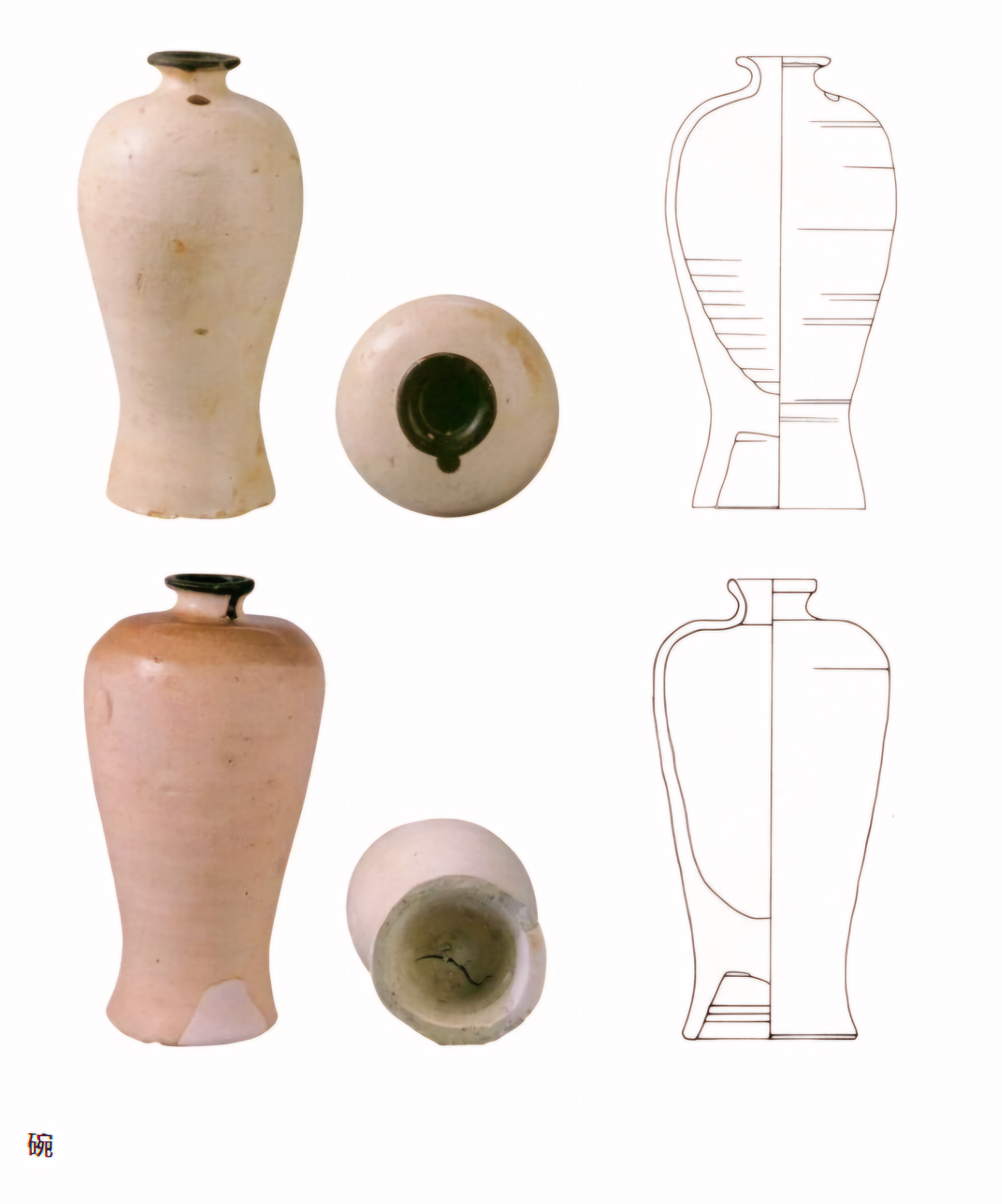 개중 자기 599건은 품종이 백자白瓷(백지흑화白地黑花 혹은 백지갈화白地褐花 등을 포함한다.)·흑자黑瓷·취람유자翠蓝釉瓷 세 종류를 포함한다.