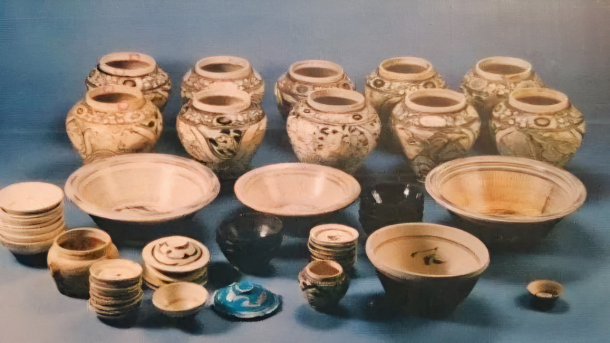 개중 자기 599건은 품종이 백자白瓷(백지흑화白地黑花 혹은 백지갈화白地褐花 등을 포함한다.)·흑자黑瓷·취람유자翠蓝釉瓷 세 종류를 포함한다.