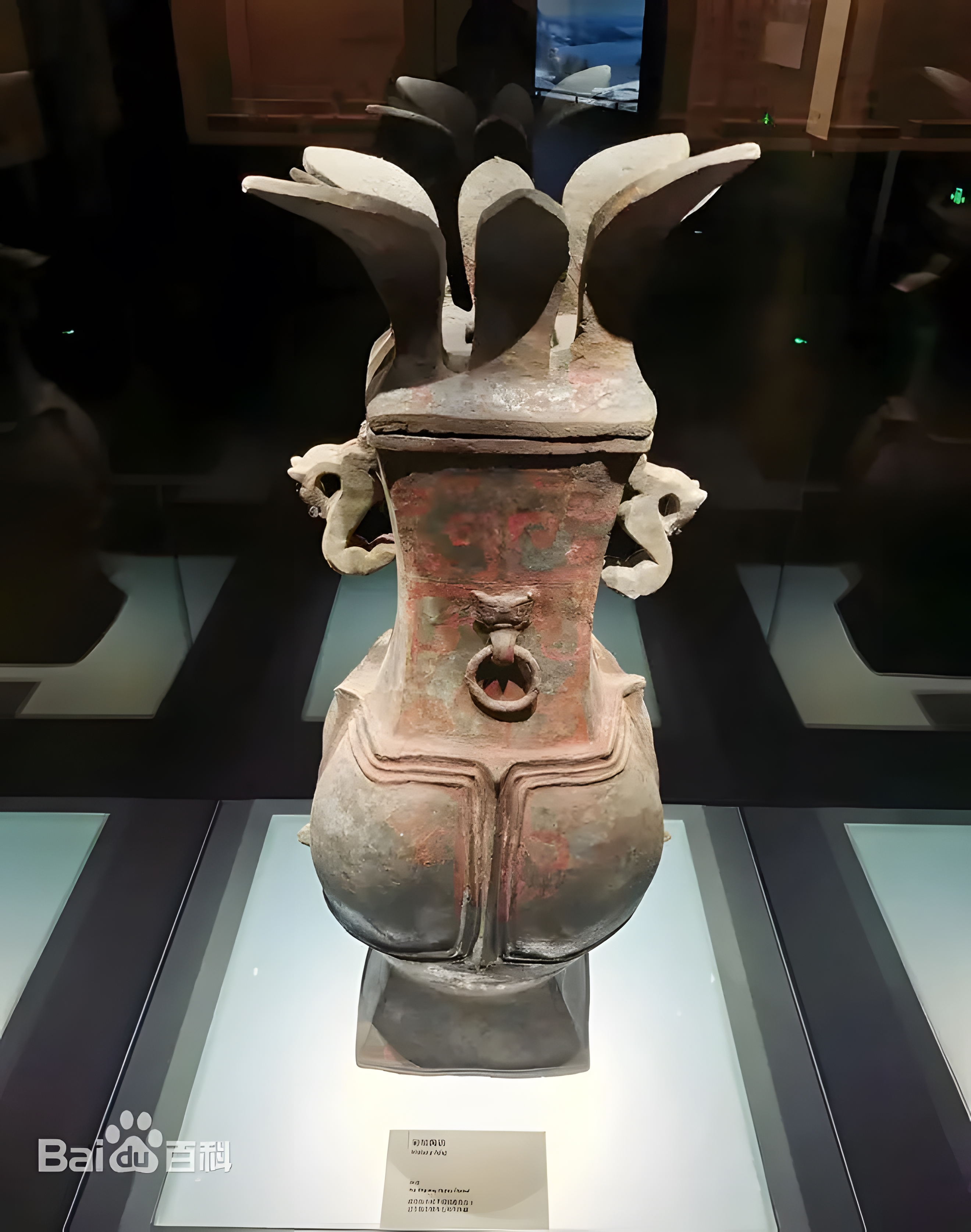 이 유물은 높이가 약 73cm로 몸 전체가 붉은빛을 띠며, 한 줄 권운무늬[单线卷云纹]가 있다.