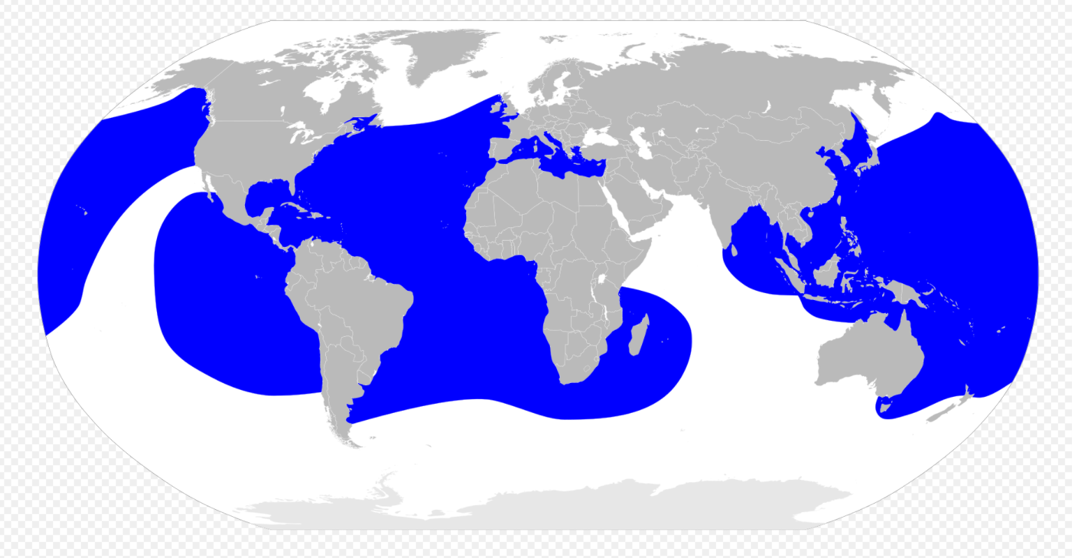 이게 장수거북 분포해역이라는데, 저를 보면 한반도 주변 해역도 포함하는데 출현한 적 있었던가 싶다.