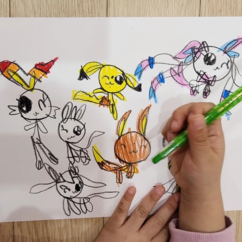 K는 로봇 나무를 그리는 거냐 물었더니 장난감 나무를 그리는 거라고 소곤소곤 말해줬다. 장난감 열매를 맺게 해서, 원하는 장난감을 잔뜩 갖고 싶었나보다.