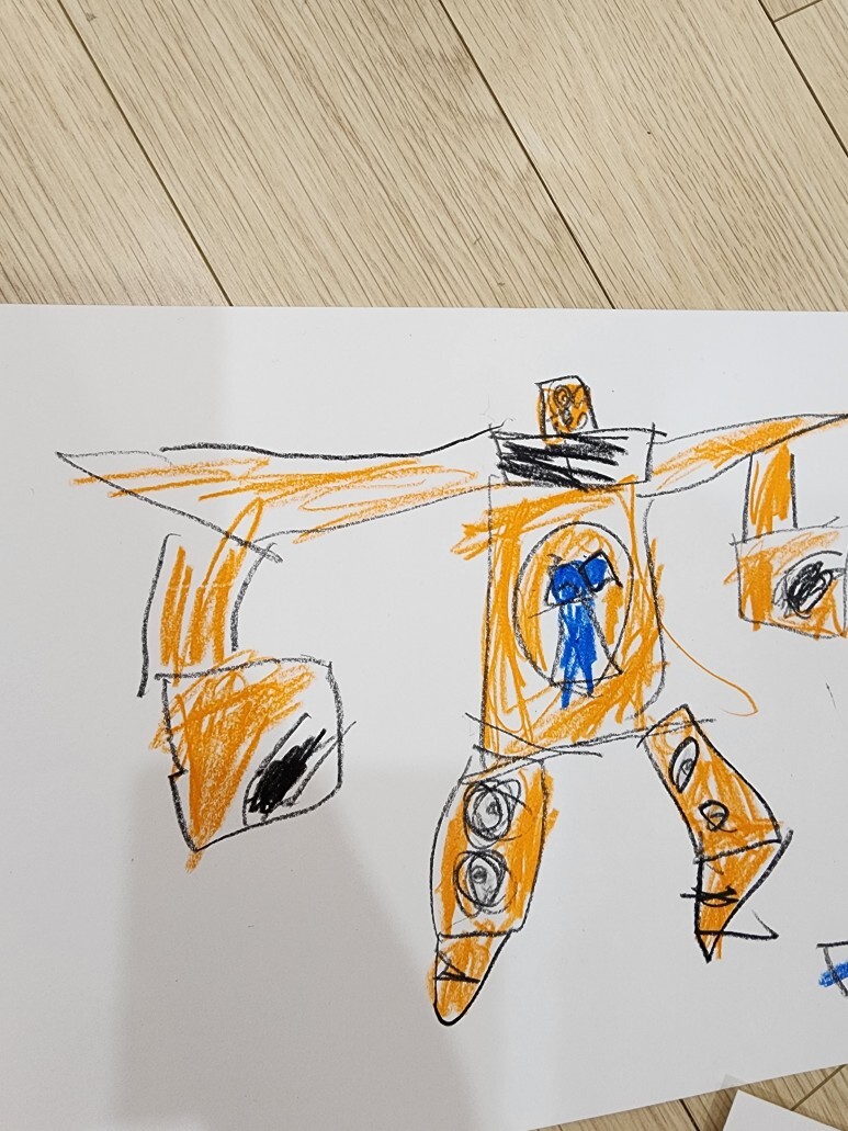 "그림이 너무 맘에 드는데, 선생님이 사진을 찍어도 될까."라고 했더니 "옆에 있는 자동차는 마음에 안드니 그걸 빼고 찍어주세요"라고 하여 로보트만 나오게 찍었다.
