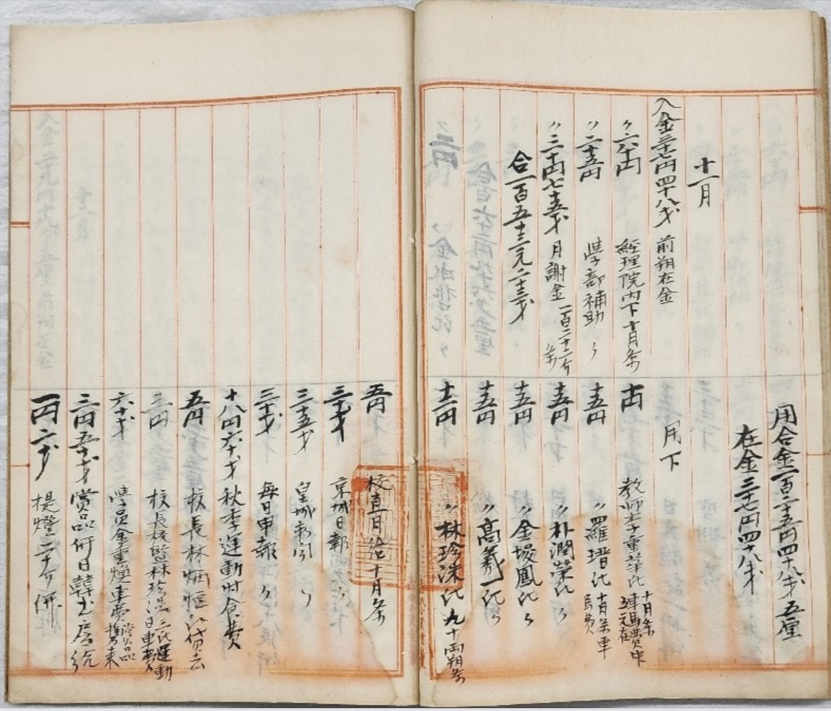 ‘흥화학교 회계부’는 학교의 수입과 지출금액 용처를 기록한 문서로 시설운영 상황을 확인할 수 있는 실증유물이다.