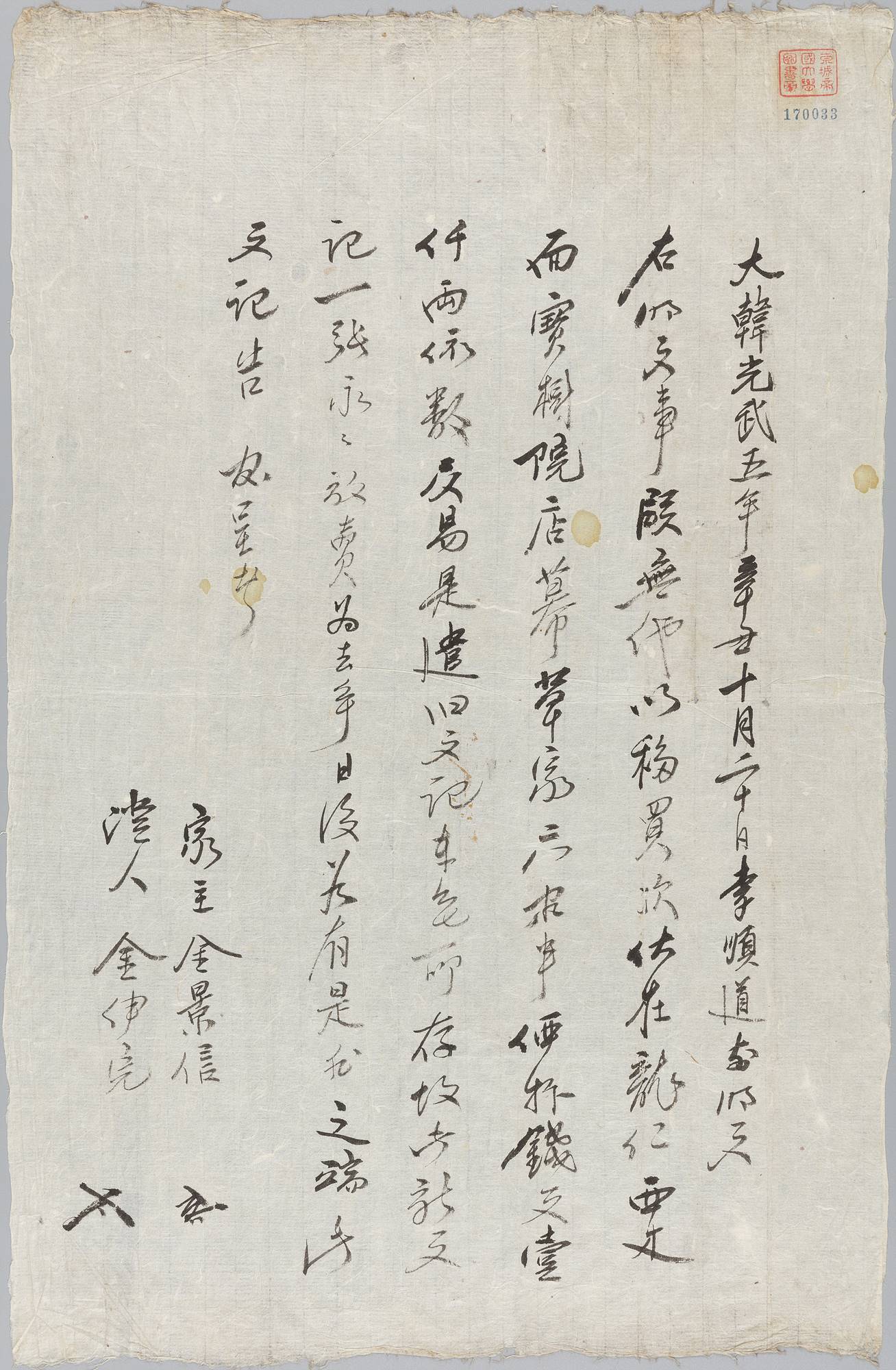 大韓光武五年辛丑十月二十日李順道前明文