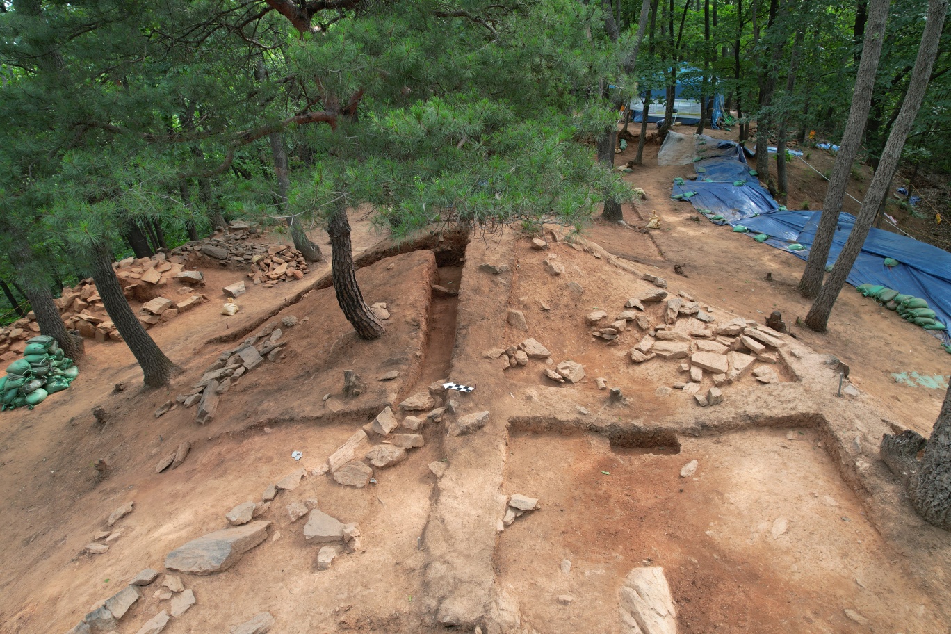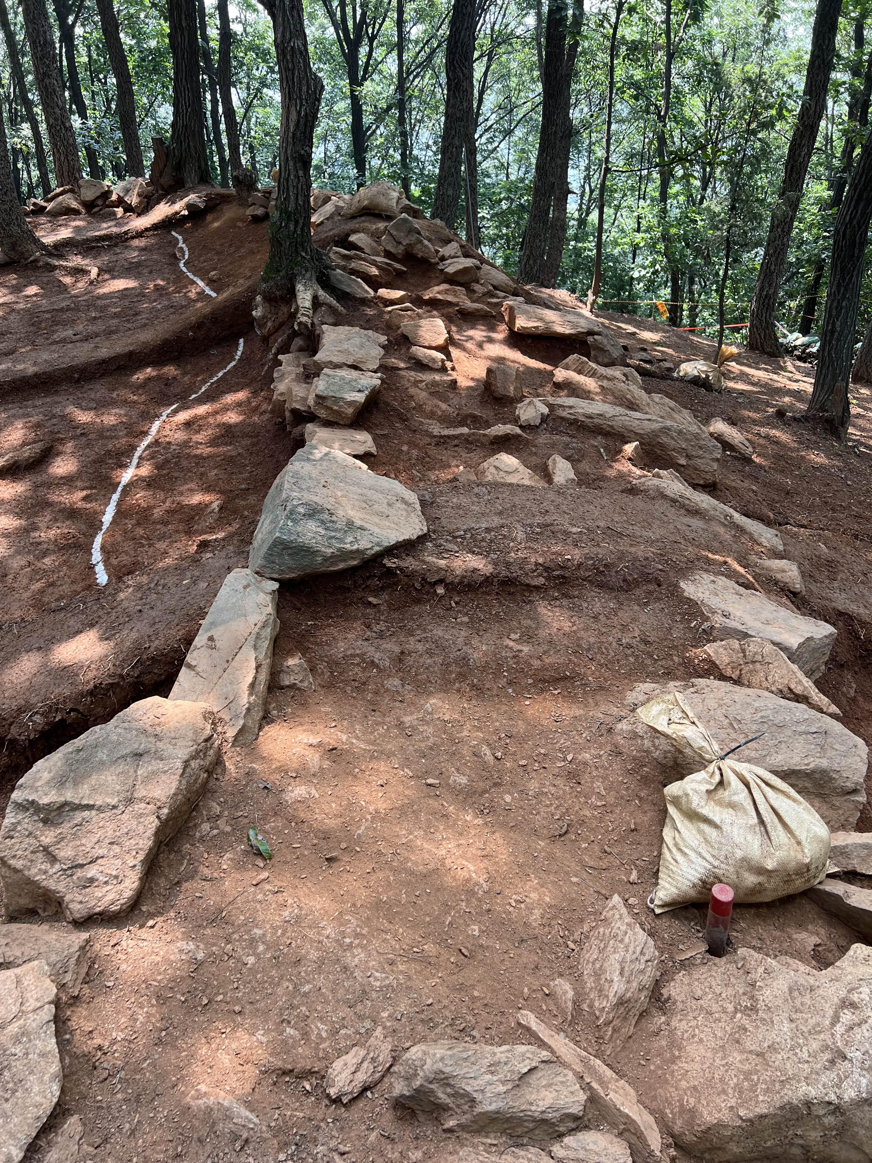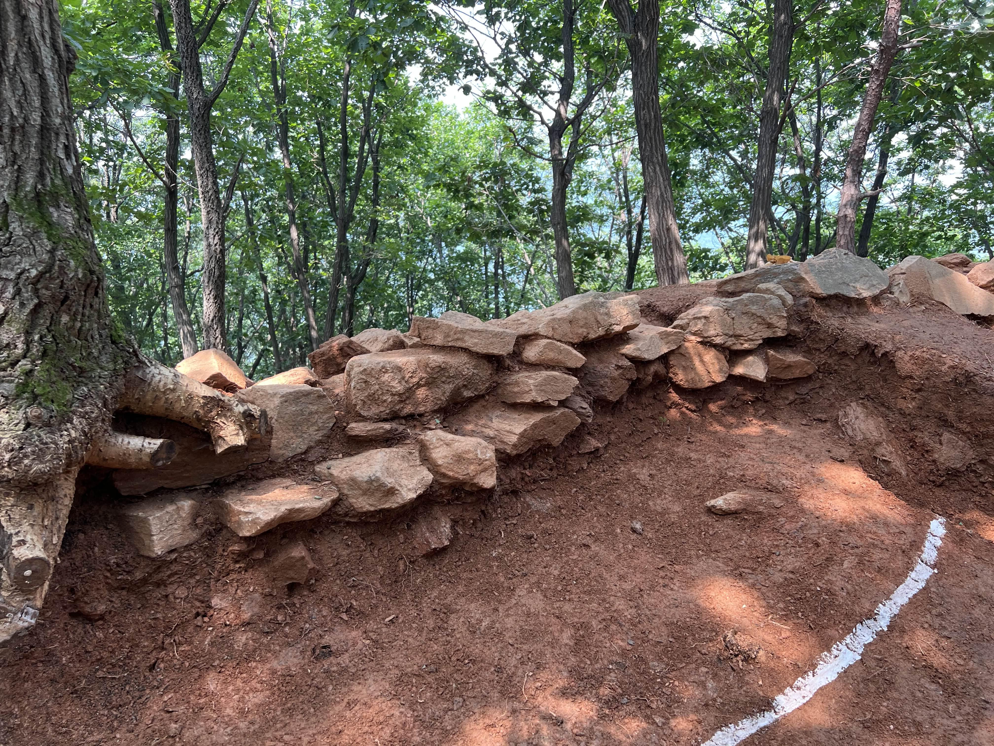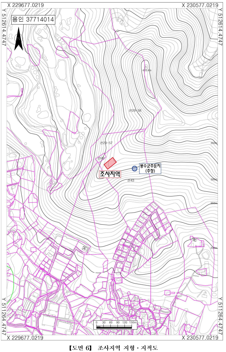 봉수터 서쪽 하단부에서 봉수군 거주 건물터로 추정되는 위치까지 확인하였다.