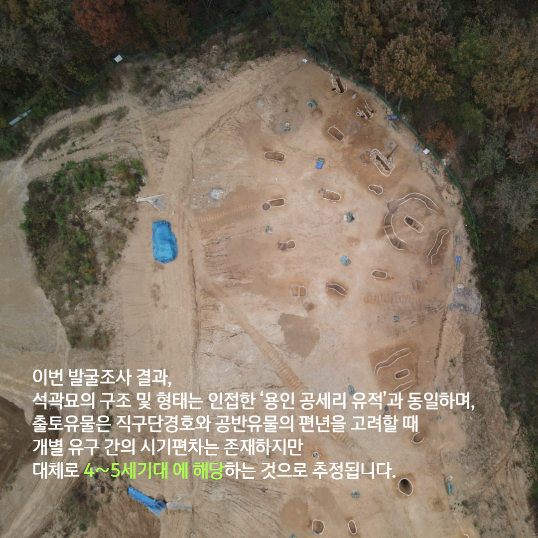 이 유적은 용인지역에서 지금까지 확인된 백제 한성기 고분군 중 규모가 가장 큰 유적이라고 합니다.