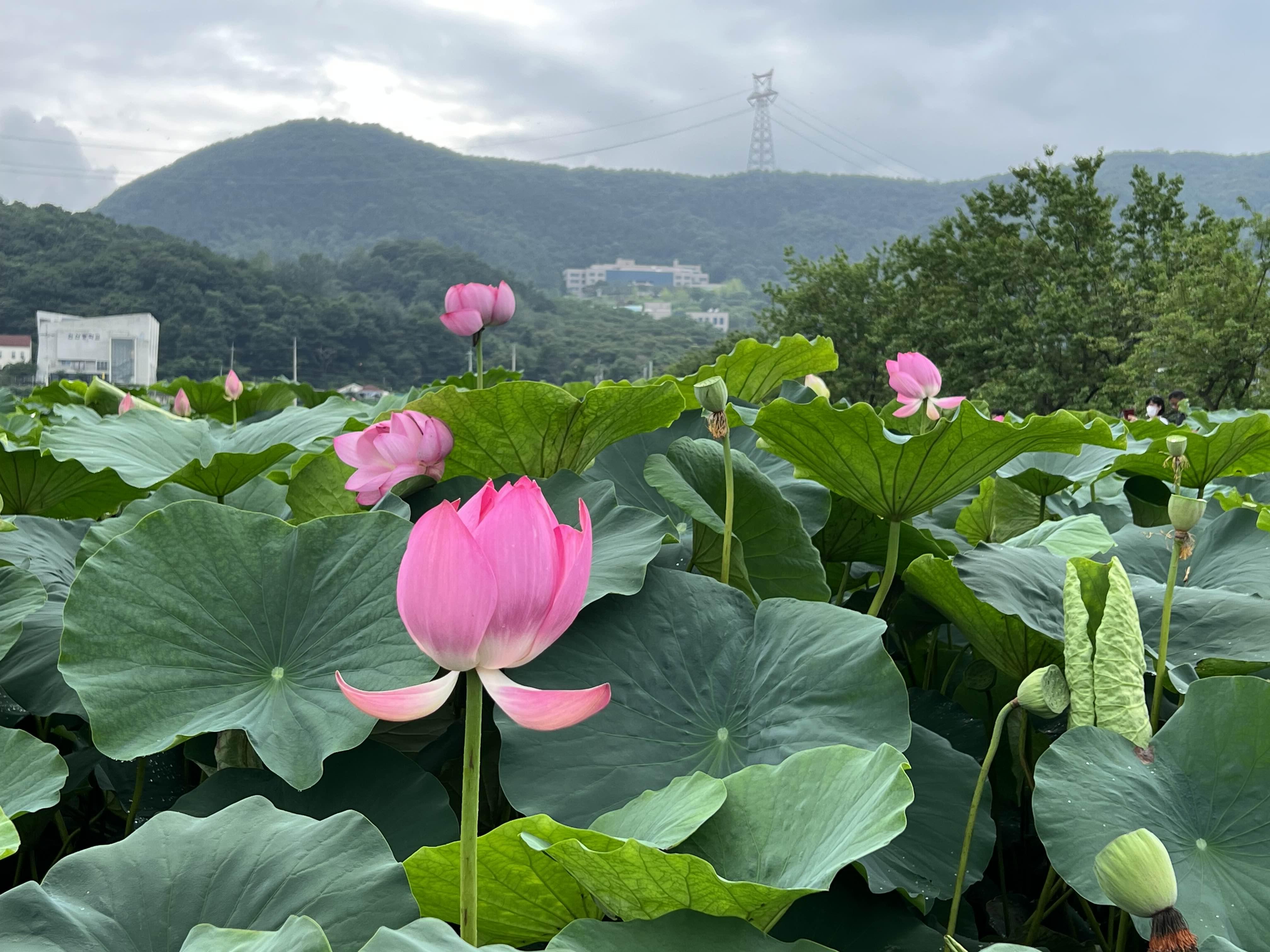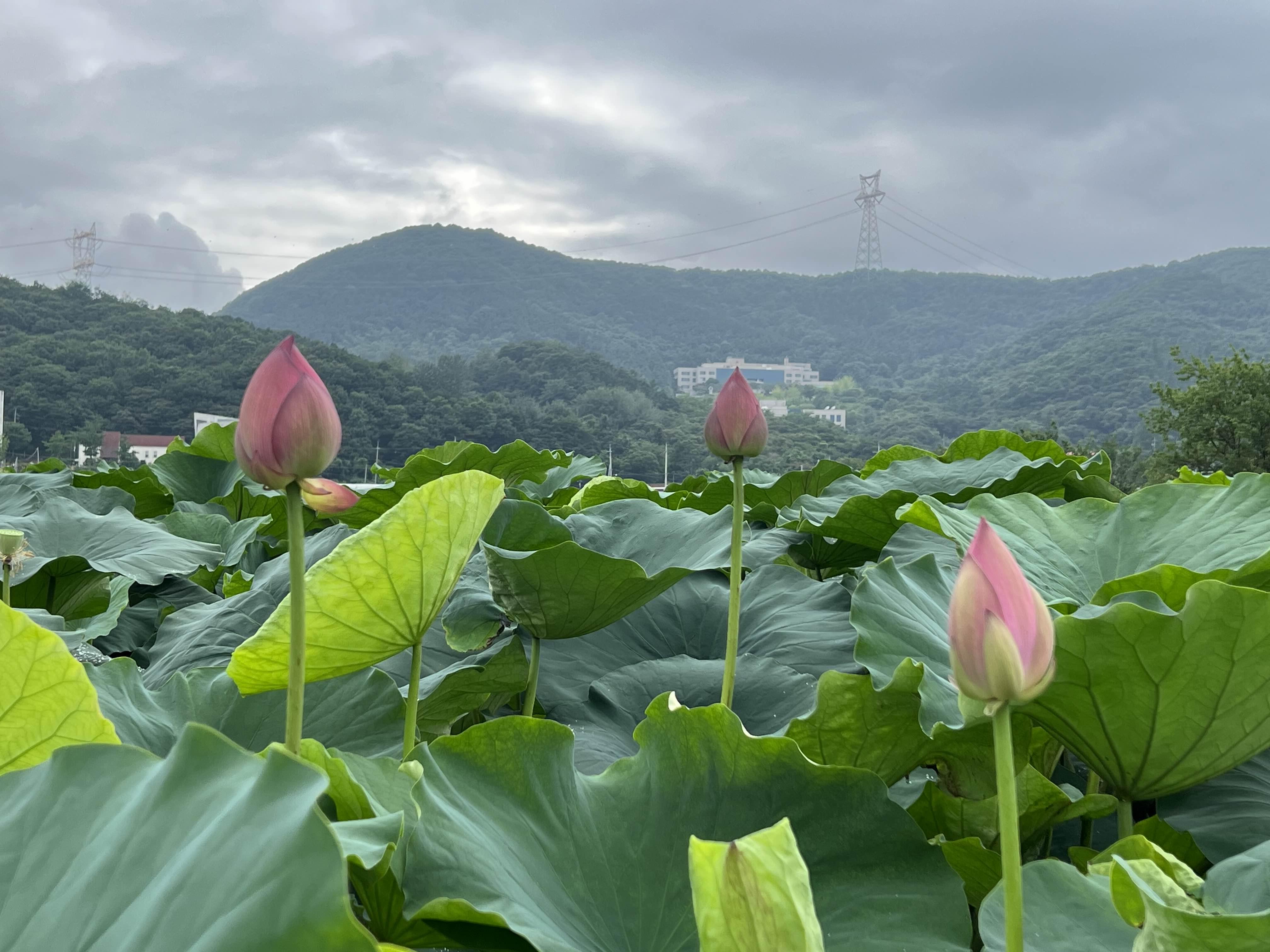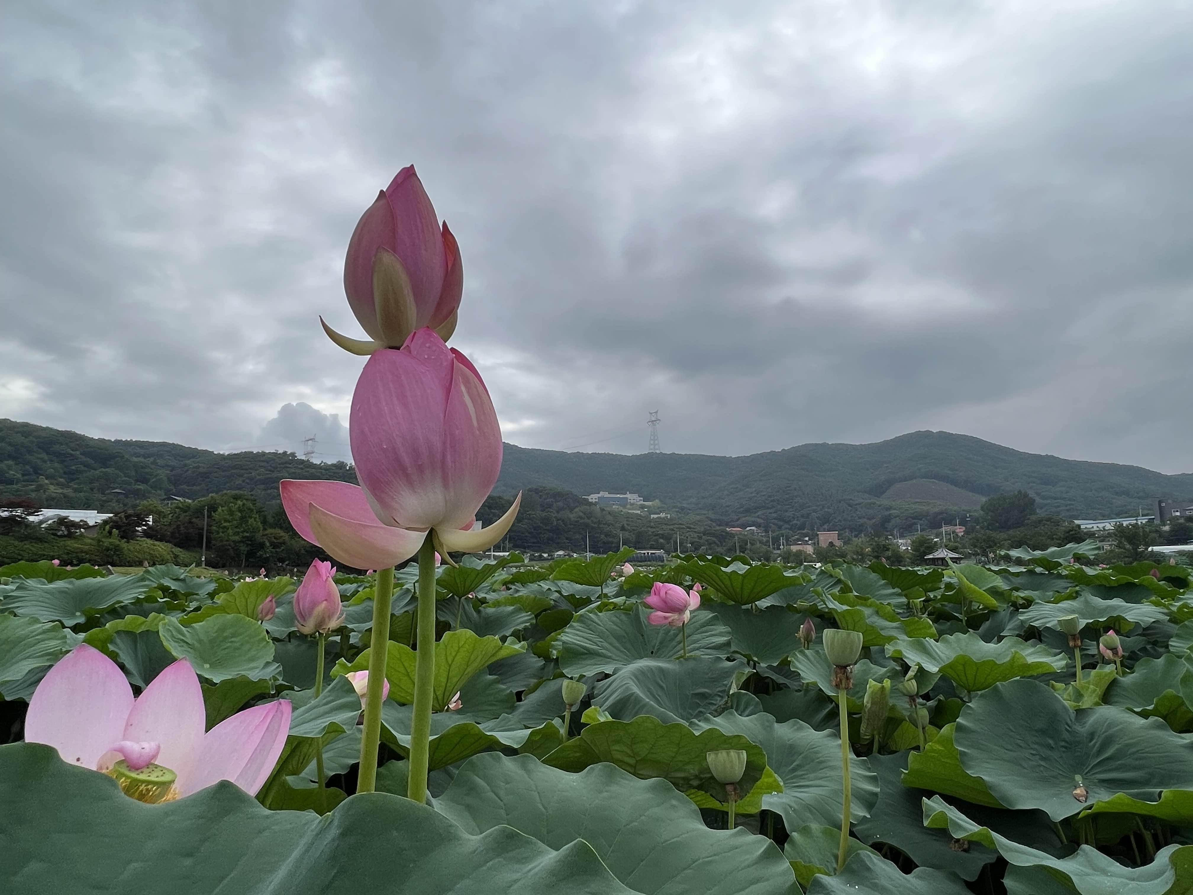 이날은 소나기가 왔다갔다하고 구름이 잔뜩 껴서 하늘이 흐렸지만, 이런 날씨에도 연꽃이 잘 어울렸다.