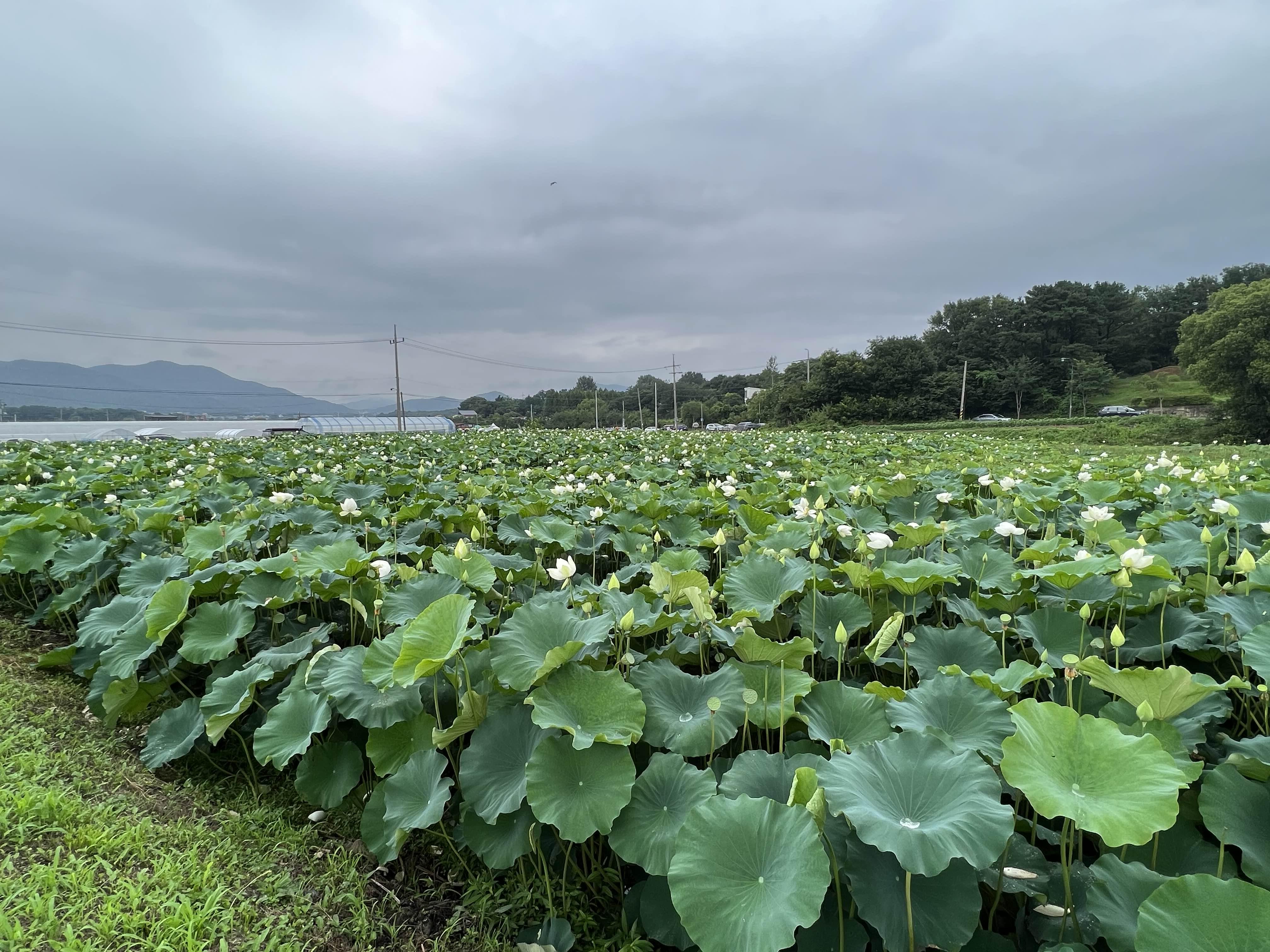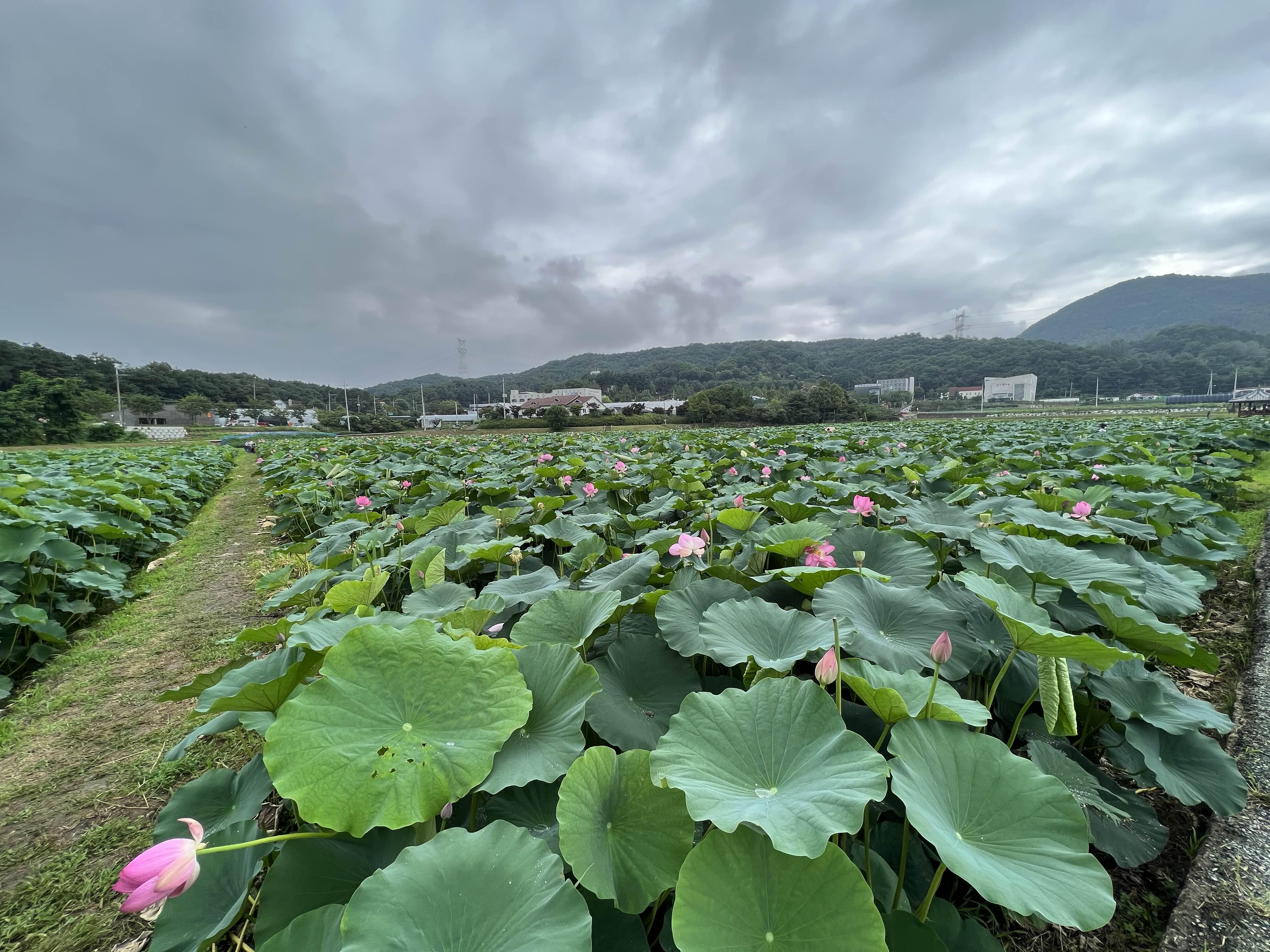 이날은 소나기가 왔다갔다하고 구름이 잔뜩 껴서 하늘이 흐렸지만, 이런 날씨에도 연꽃이 잘 어울렸다.