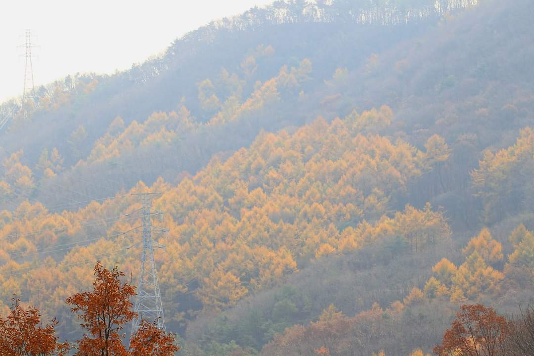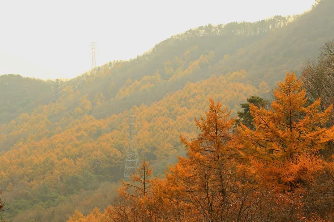 오늘 용인 서봉사지에서 전면으로 바라본 형제봉 낙엽송 단풍은 시리도록 황홀했다.