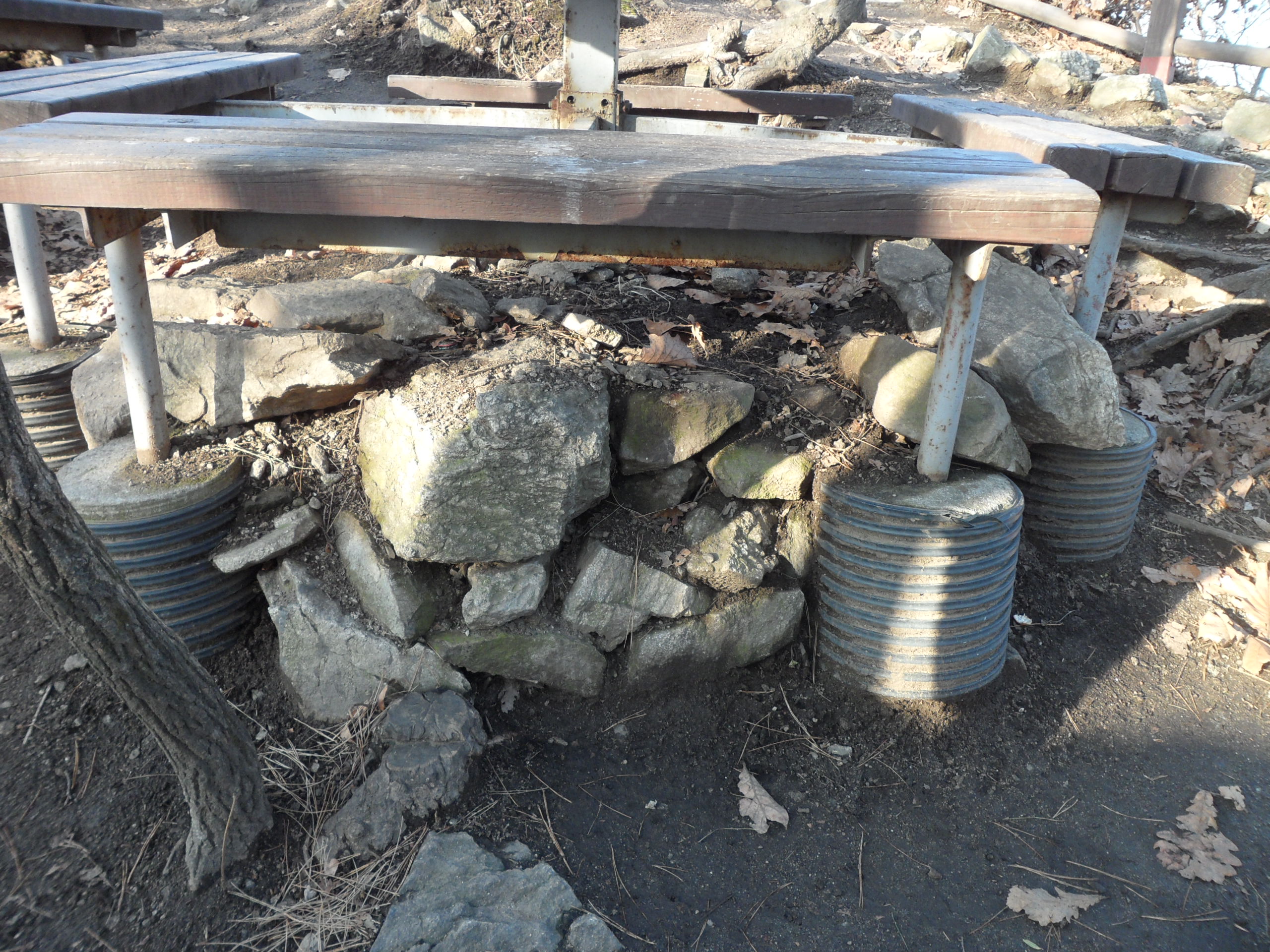 사진을 보면 이미 성돌을 빼서 벤치 지지대로 쓰거나, 나무 뿌리 주변에 둘러 놓는 등 훼손이 많이 됐었다. 그렇지만 암반을 따라 성벽 라인이 살아 있었다.