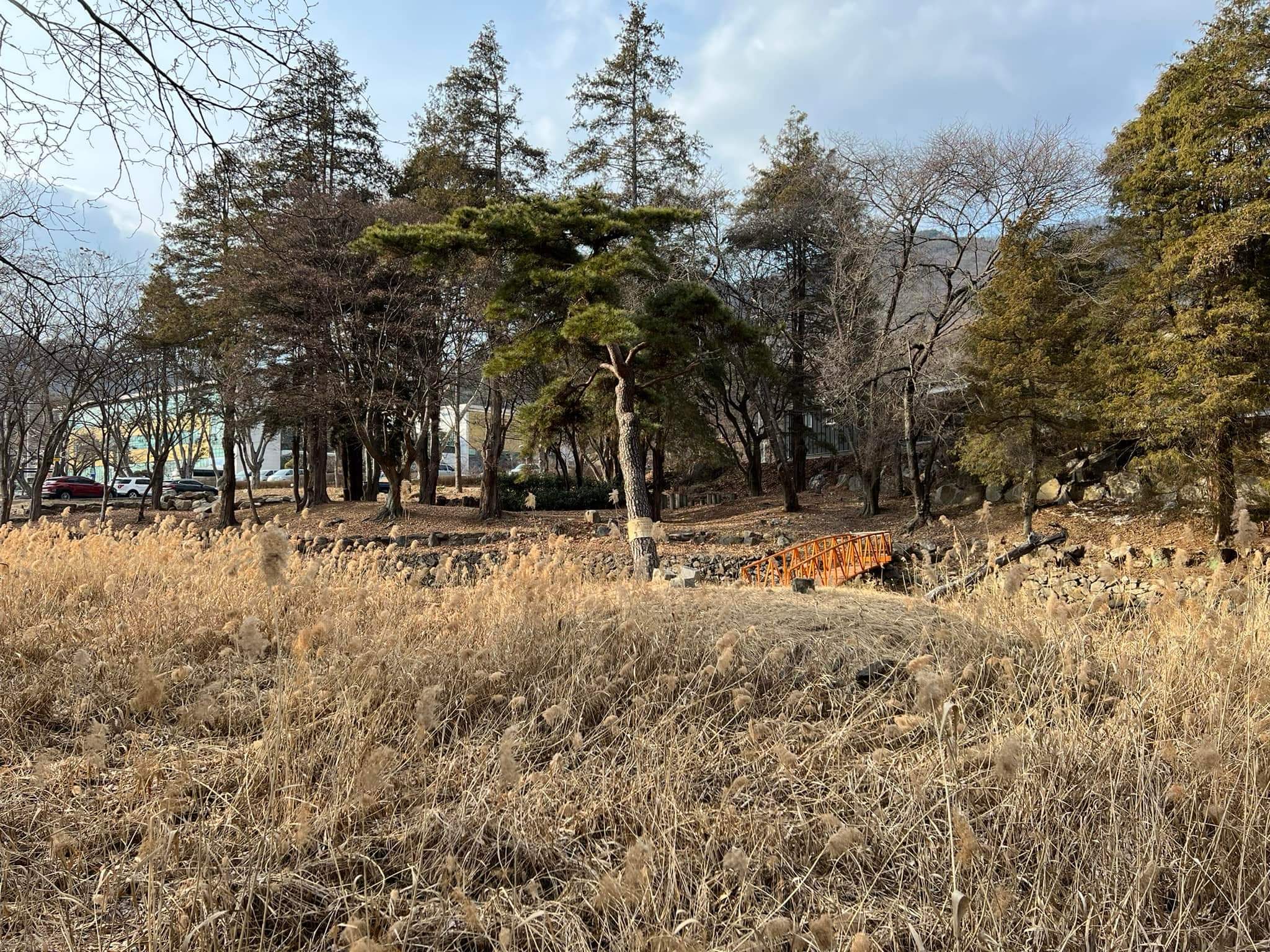 99칸 기와집은 사라지고, 대형 교회와 주차장이 들어섰지만 다행히 정원 연못터는 남았다.