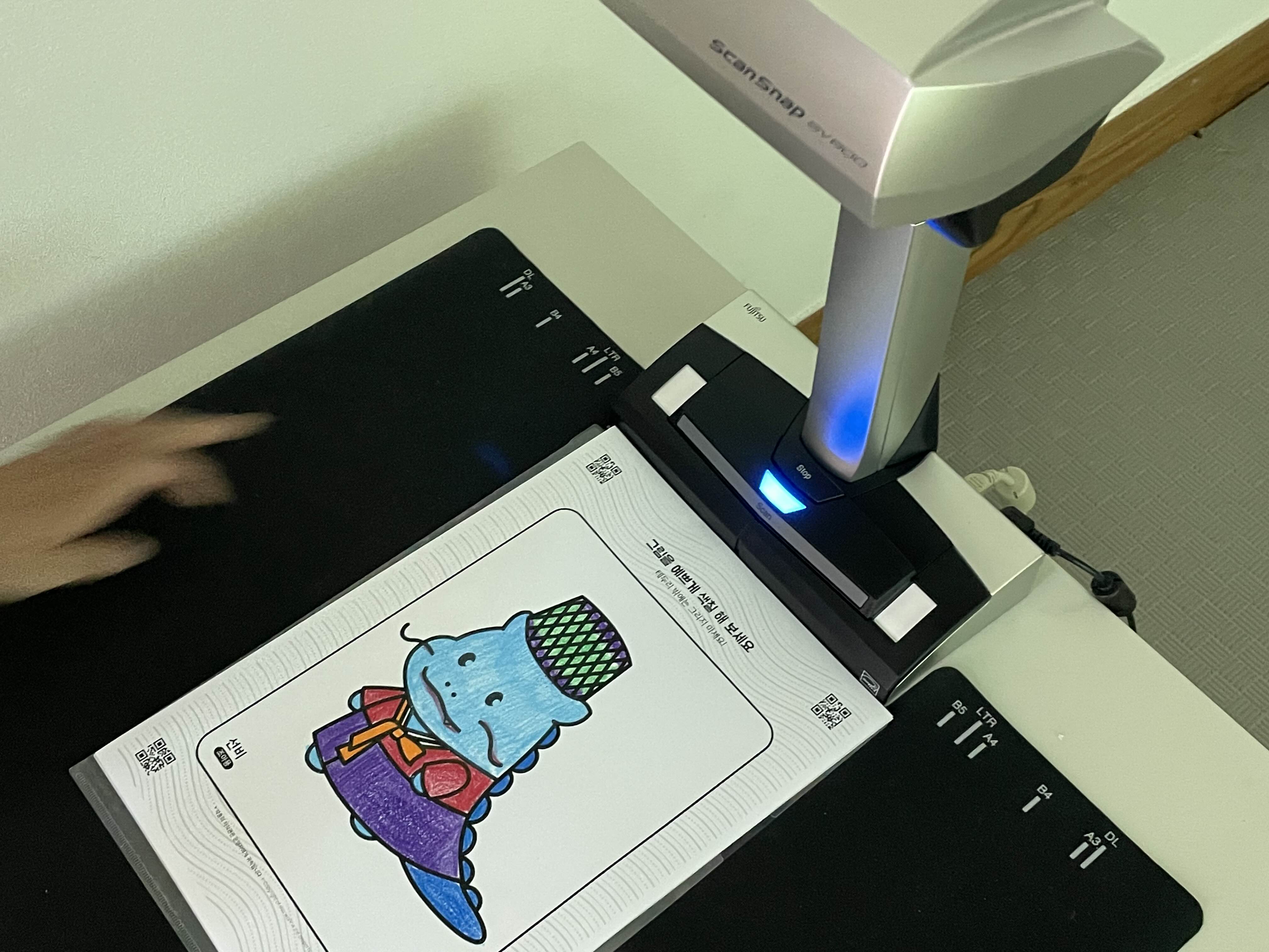 열심히 색칠하여 스캐너에 올려 두면 화면에 뿅! 하고 나타납니다.