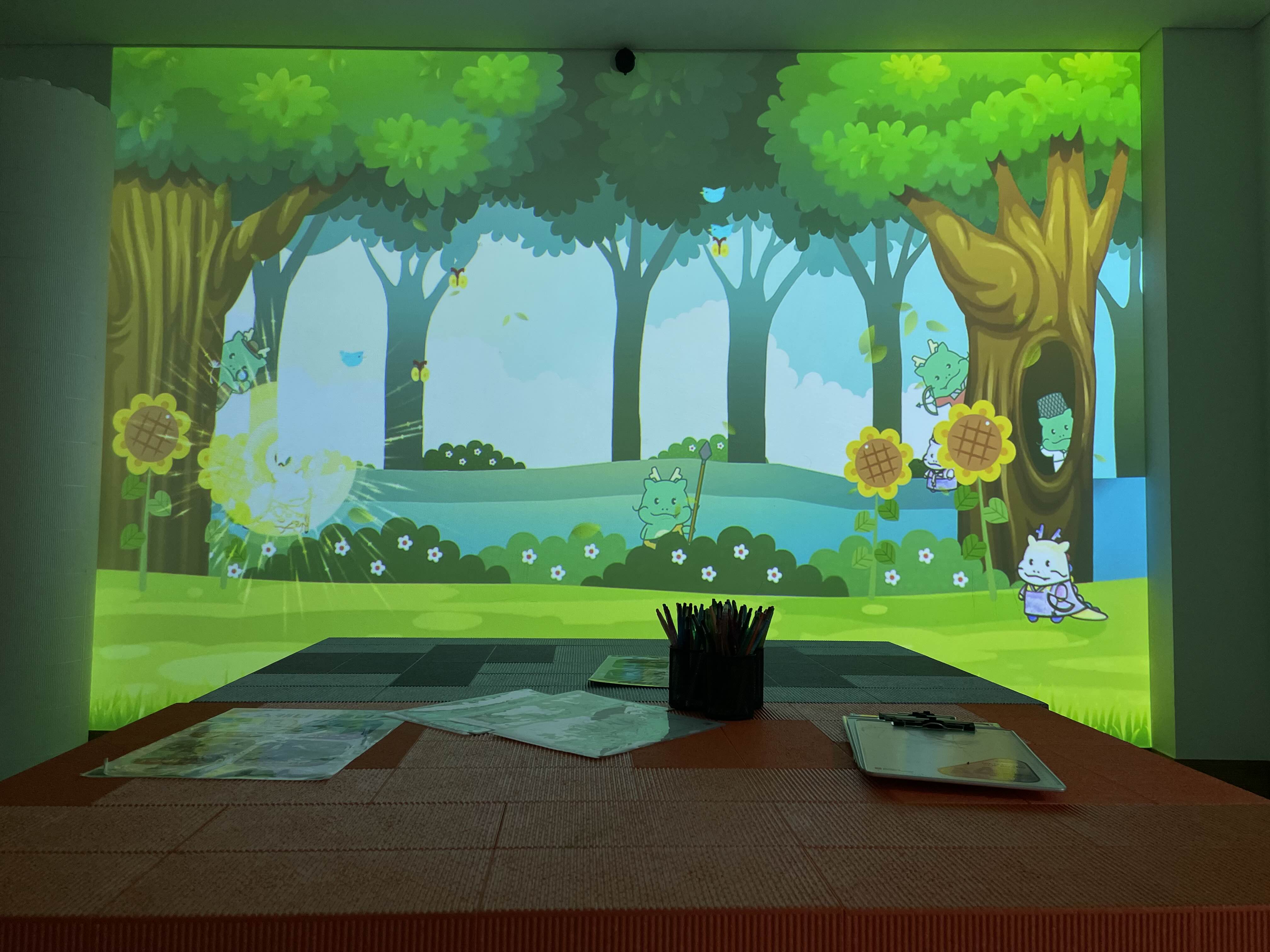 처인성역사교육관에서 원하는 콘텐츠를 키오스크에서 클릭하면 벽면에서 콘텐츠를 볼 수 있습니다.