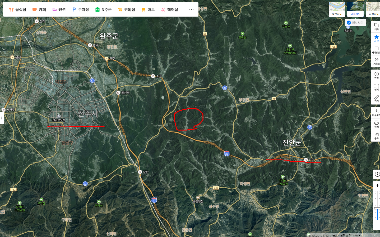 이번에 임진왜란 웅치 전적(壬辰倭亂 熊峙 戰蹟 / The ImJin War UngChi Battlefield) 이라는 이름으로 사적으로 지적된 데가 전라북도 완주군 소양면 신촌리 산51 일원과 전라북도 진안군 부귀면 세동리 산289 일원, 총 11필지 23만2천329㎡라는데, 저 중에 편의상 진안 쪽 지도를 얹어보니 아래라