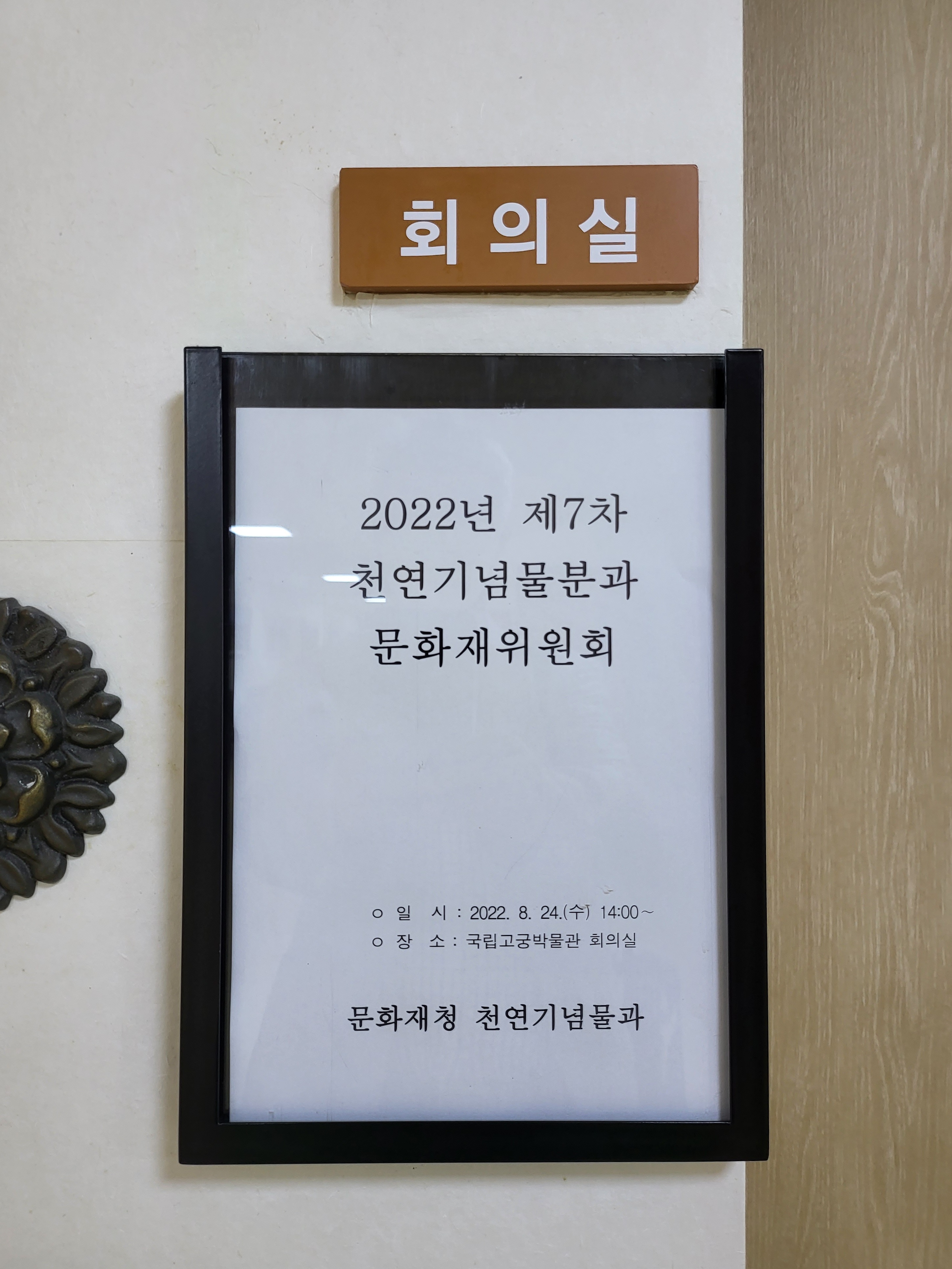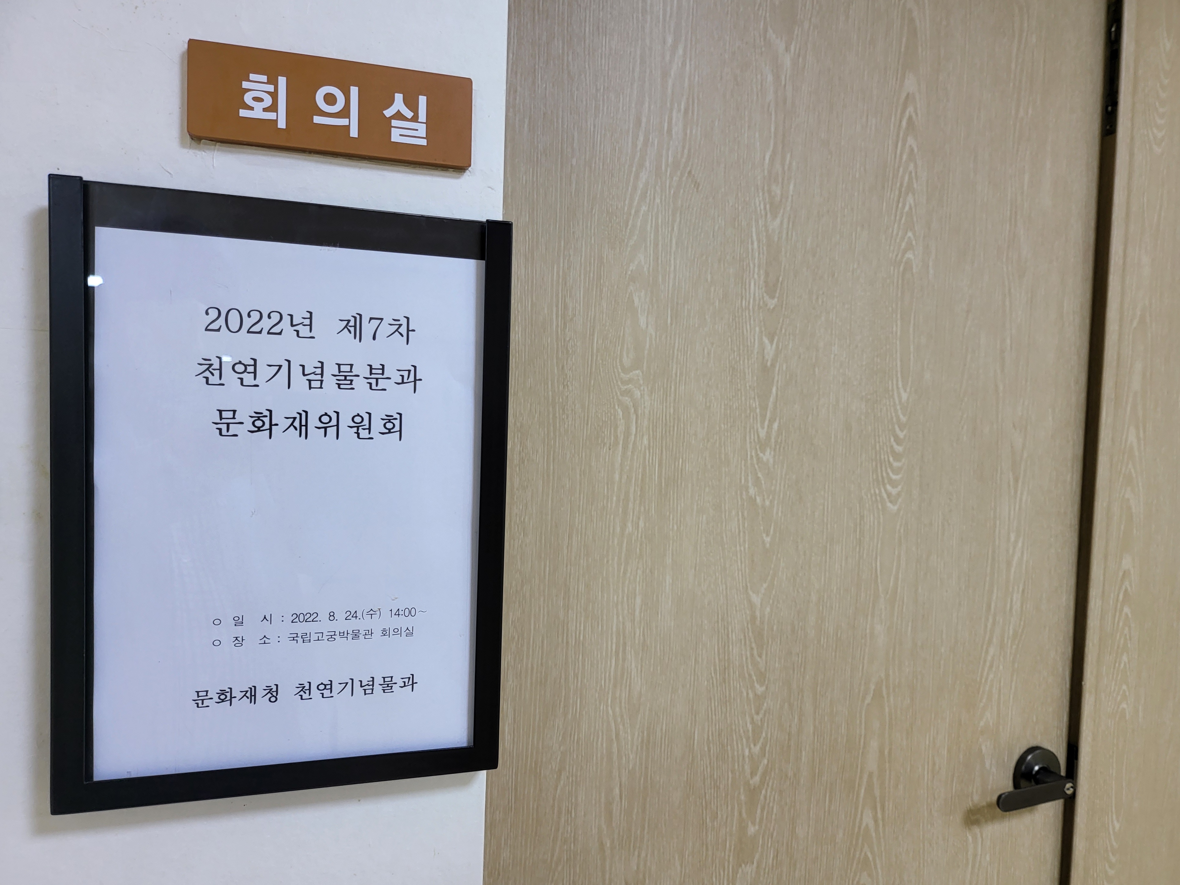 그 사무동 입구에 대개 문화재위원회가 열리는 회의실이 있어 어제는 거기서 천연기념물 분과 회의가 두시에 예정됐으니