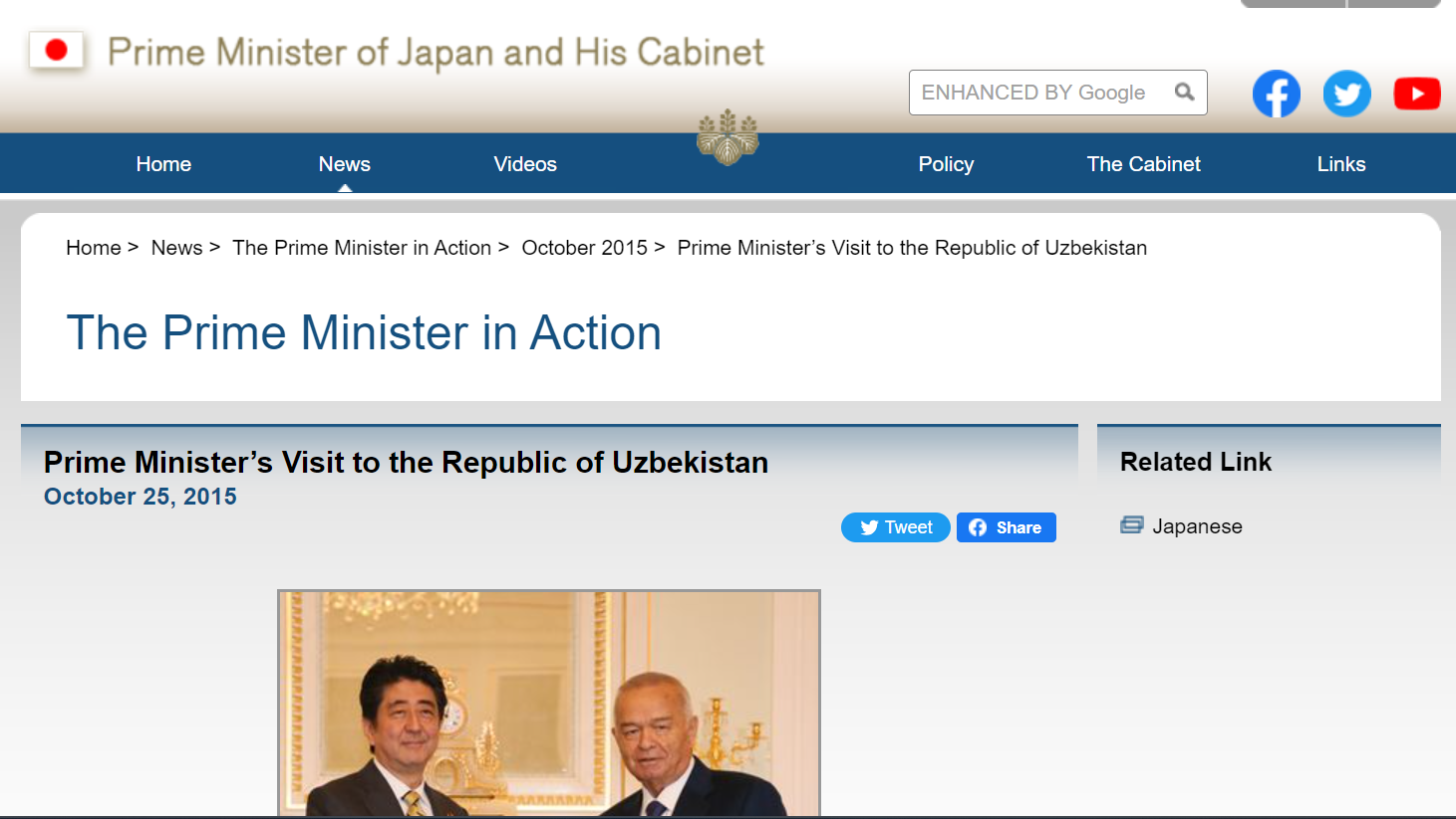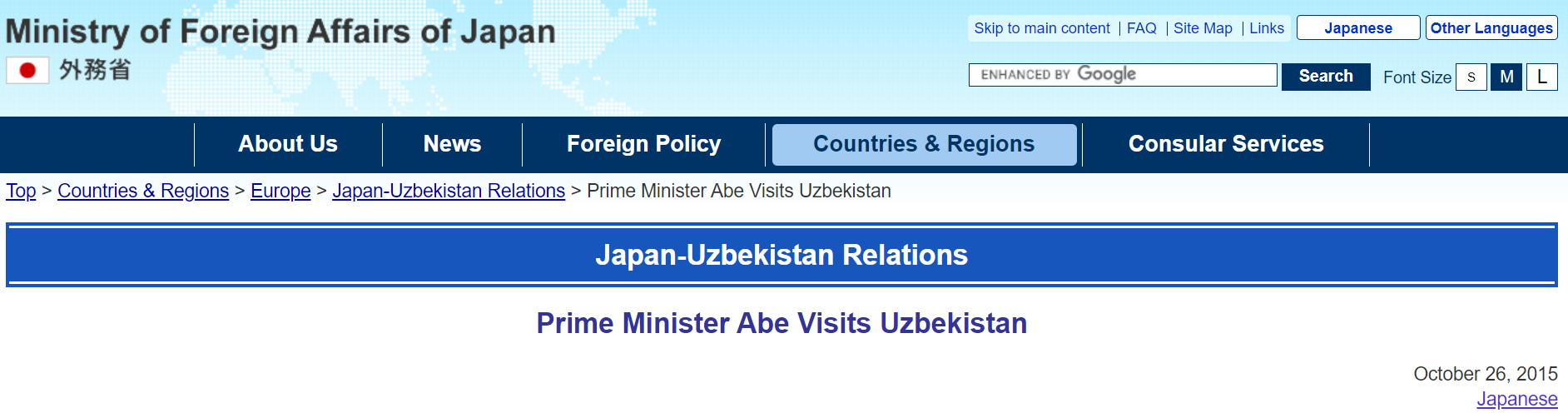 *2015년 10월 25일 우즈베키스탄 비즈니스포럼에서 아베 총리의 발언