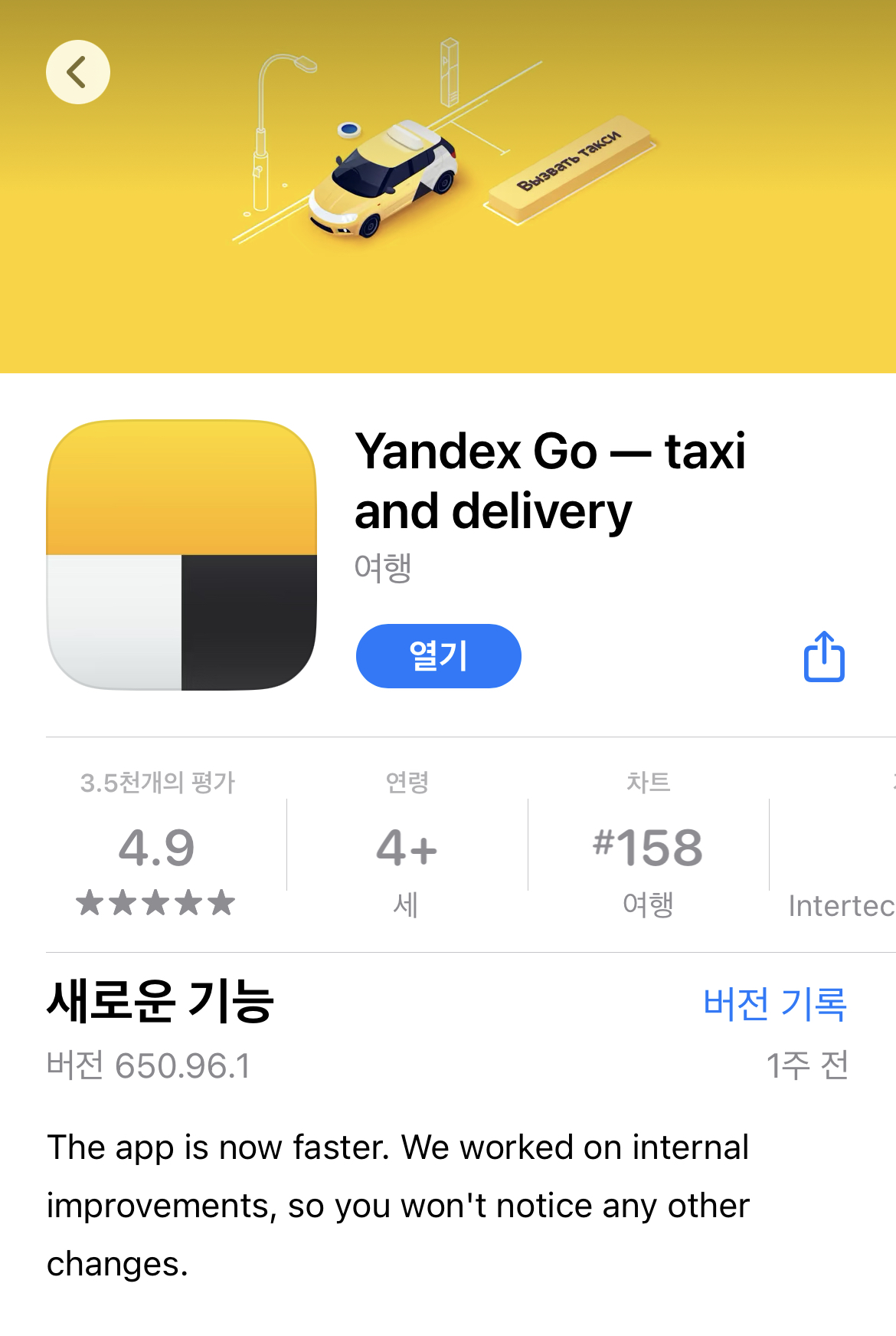 첫 번째는 ‘얀덱스 택시’ 앱을 이용하는 방법이다. 우버나 카카오T처럼 목적지를 설정하여 이용할 수 있다고 하는데, 무엇이 문제인지 핸드폰 번호 인증에 실패하여 설치하지 못했다😭