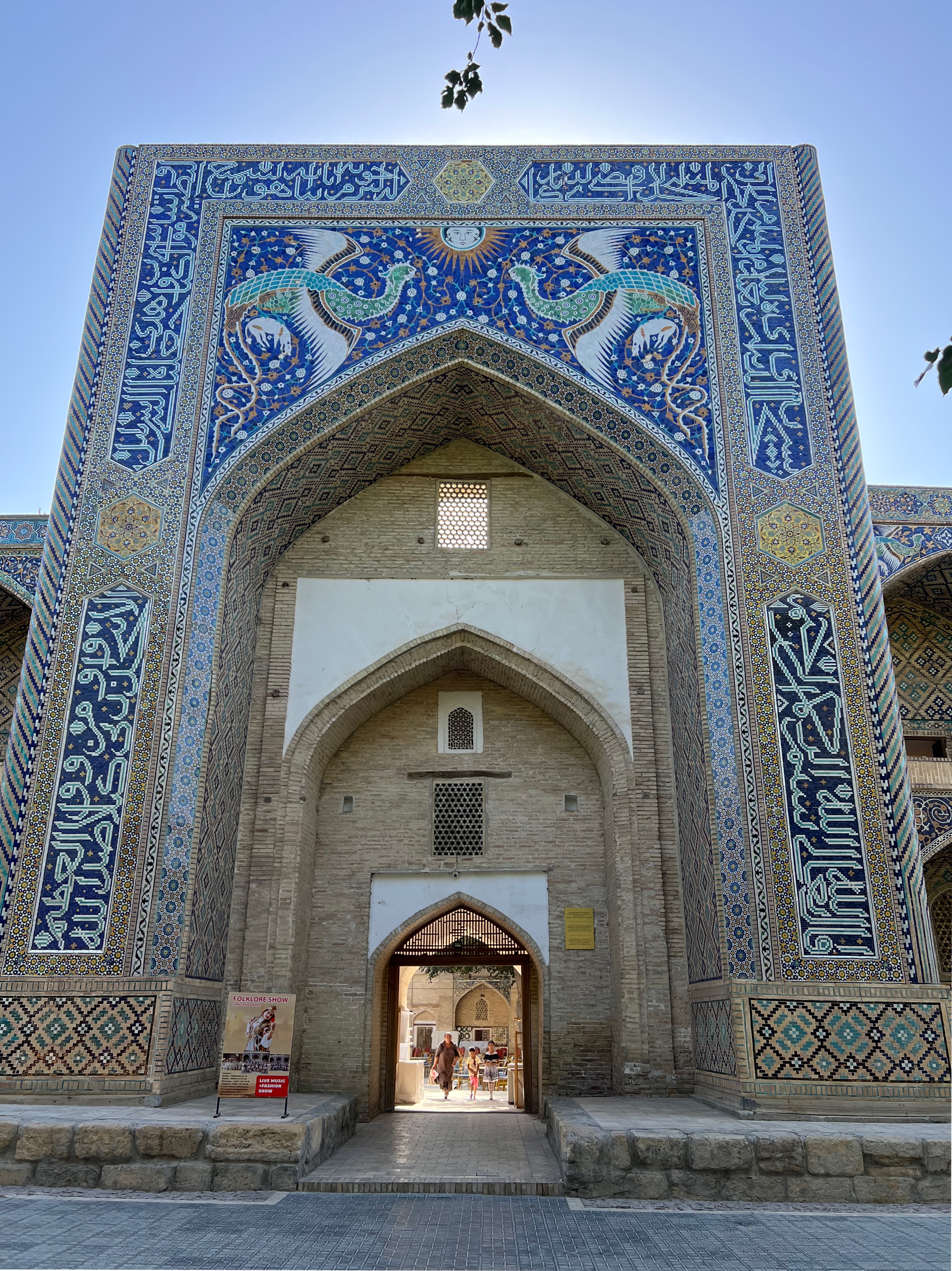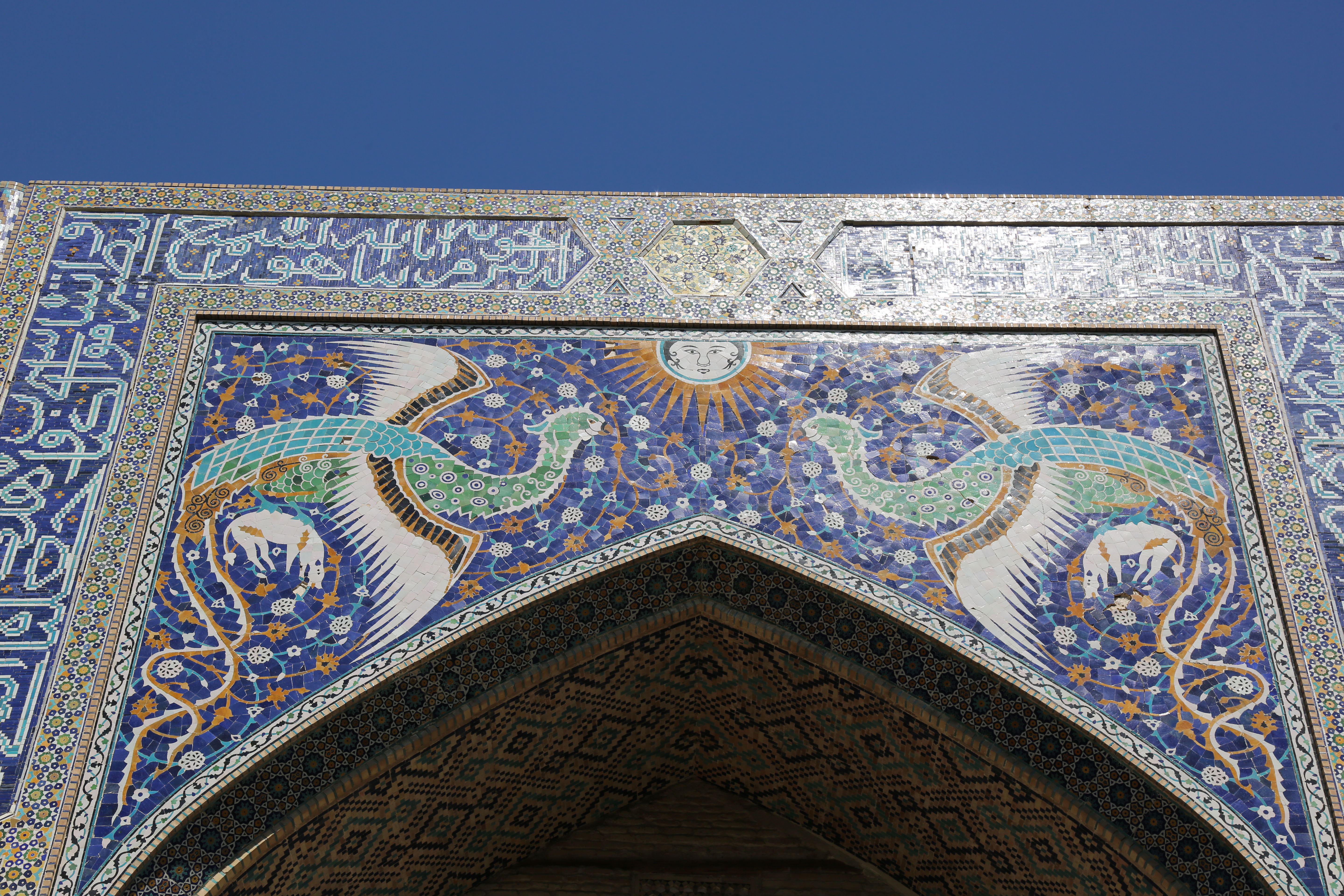 그 위에 중앙에는 태양 안에 사람 얼굴이 그려져 있는데 사마르칸트의 쉬르도르 마드라사 그림과 같은 것이라 흥미롭다.