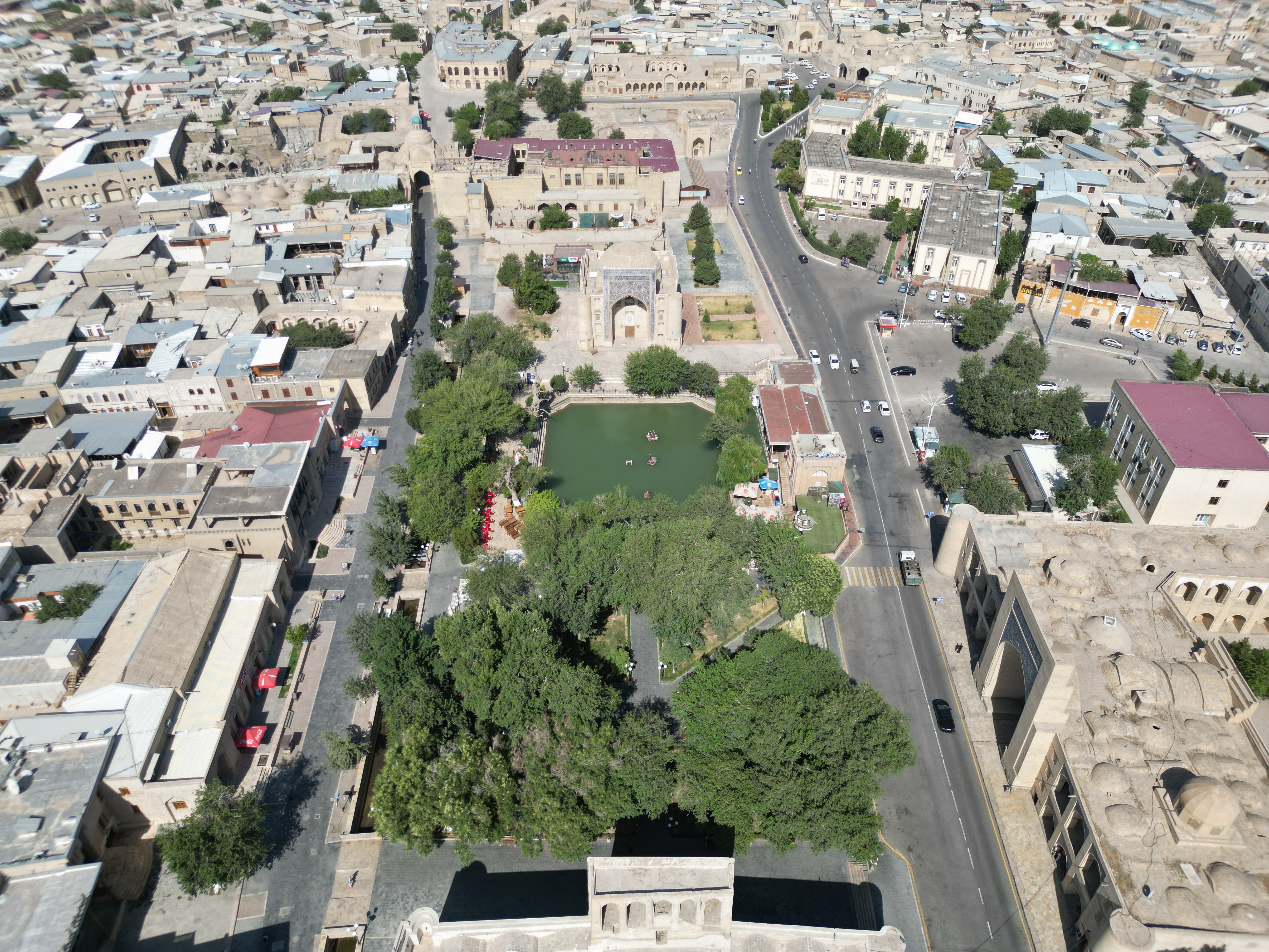 연못 주변에는 여러 마드라사 건물이 있는데 모든 건물을 소개하기는 어렵고, 가장 잘 알려진 건물인 나디르 디반베기 마드라사(Nodir Devonbegi Madrasah)만 소개하겠다.