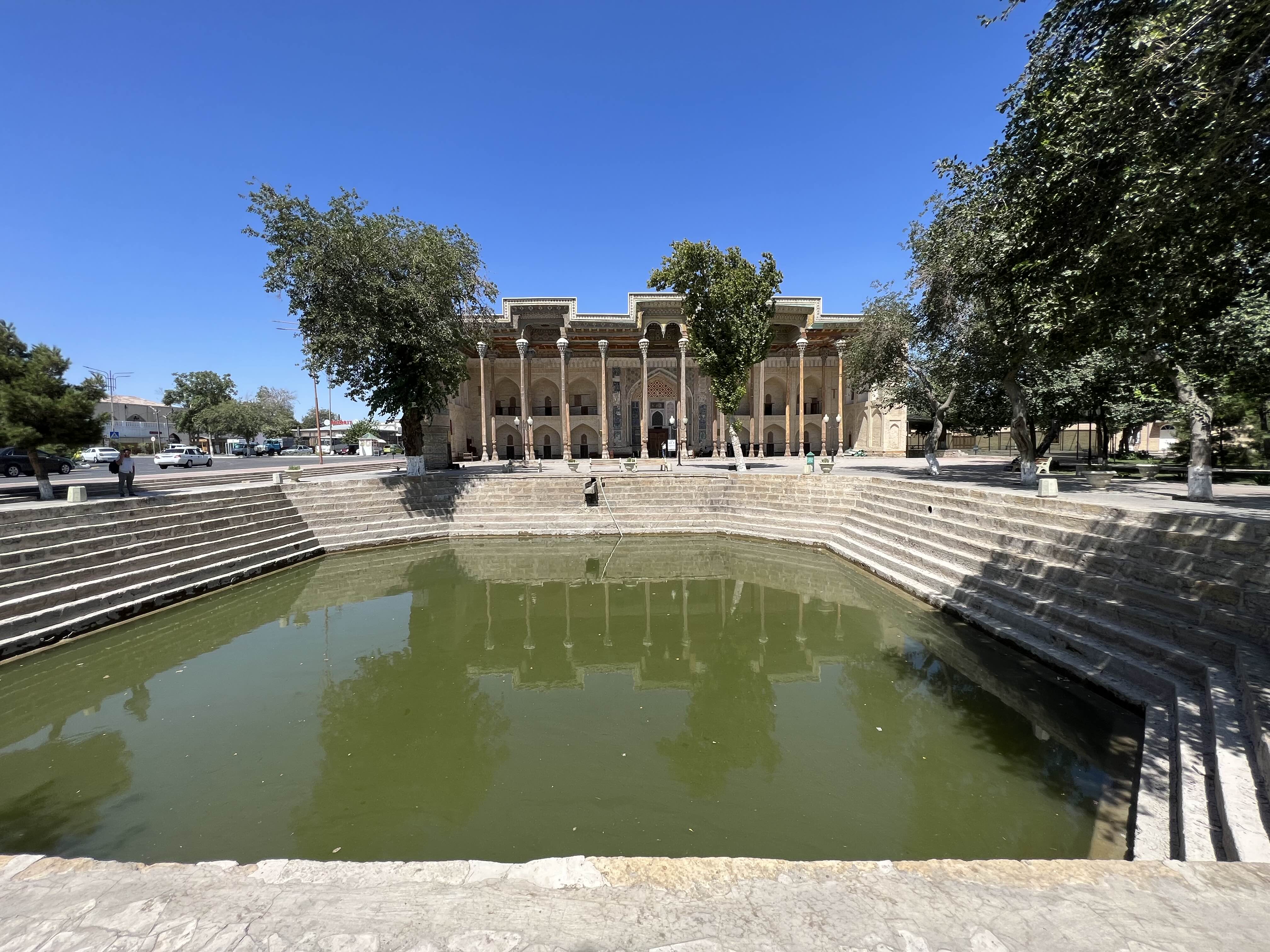 연못 주변에는 여러 마드라사 건물이 있는데 모든 건물을 소개하기는 어렵고, 가장 잘 알려진 건물인 나디르 디반베기 마드라사(Nodir Devonbegi Madrasah)만 소개하겠다.