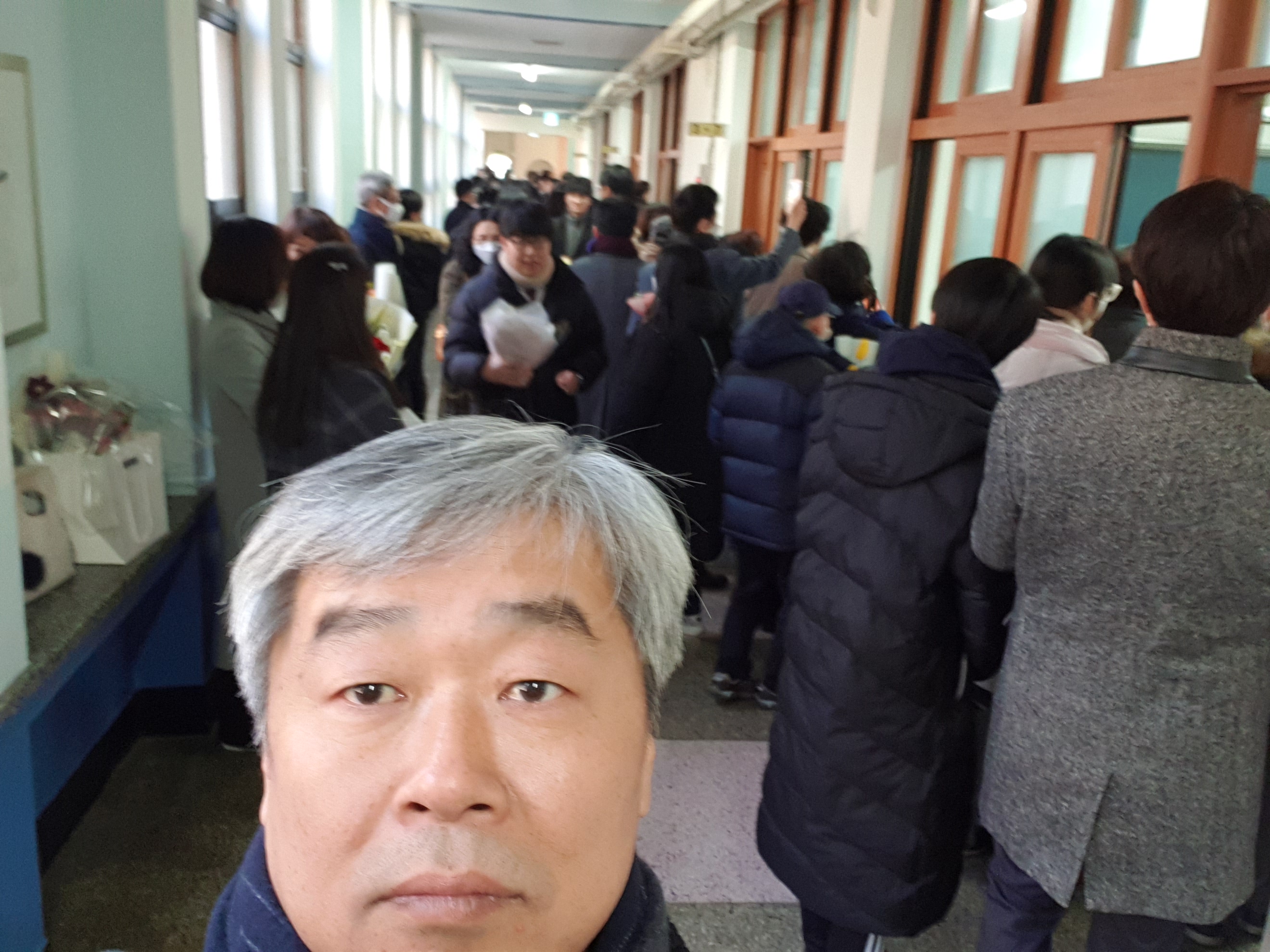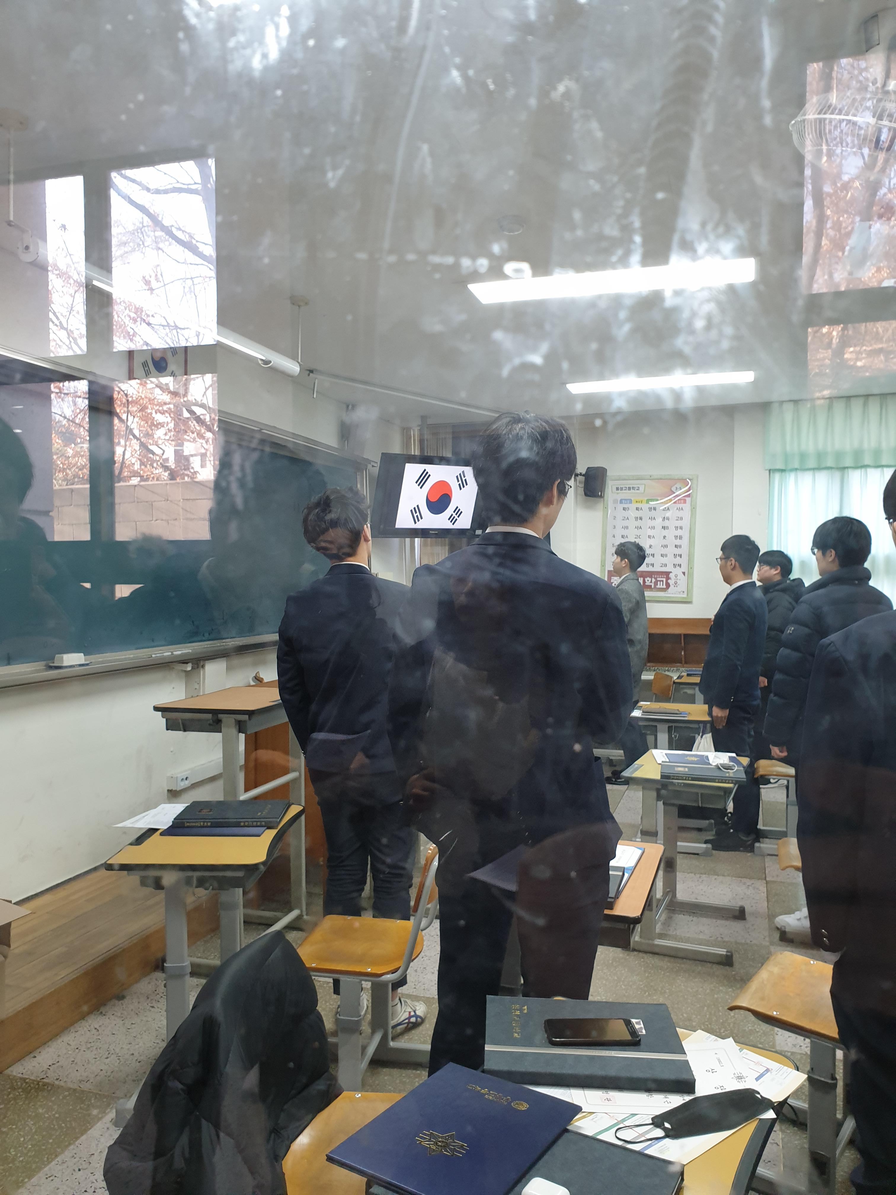 한데 교실졸업식이 아니라 복도 졸업식이다.