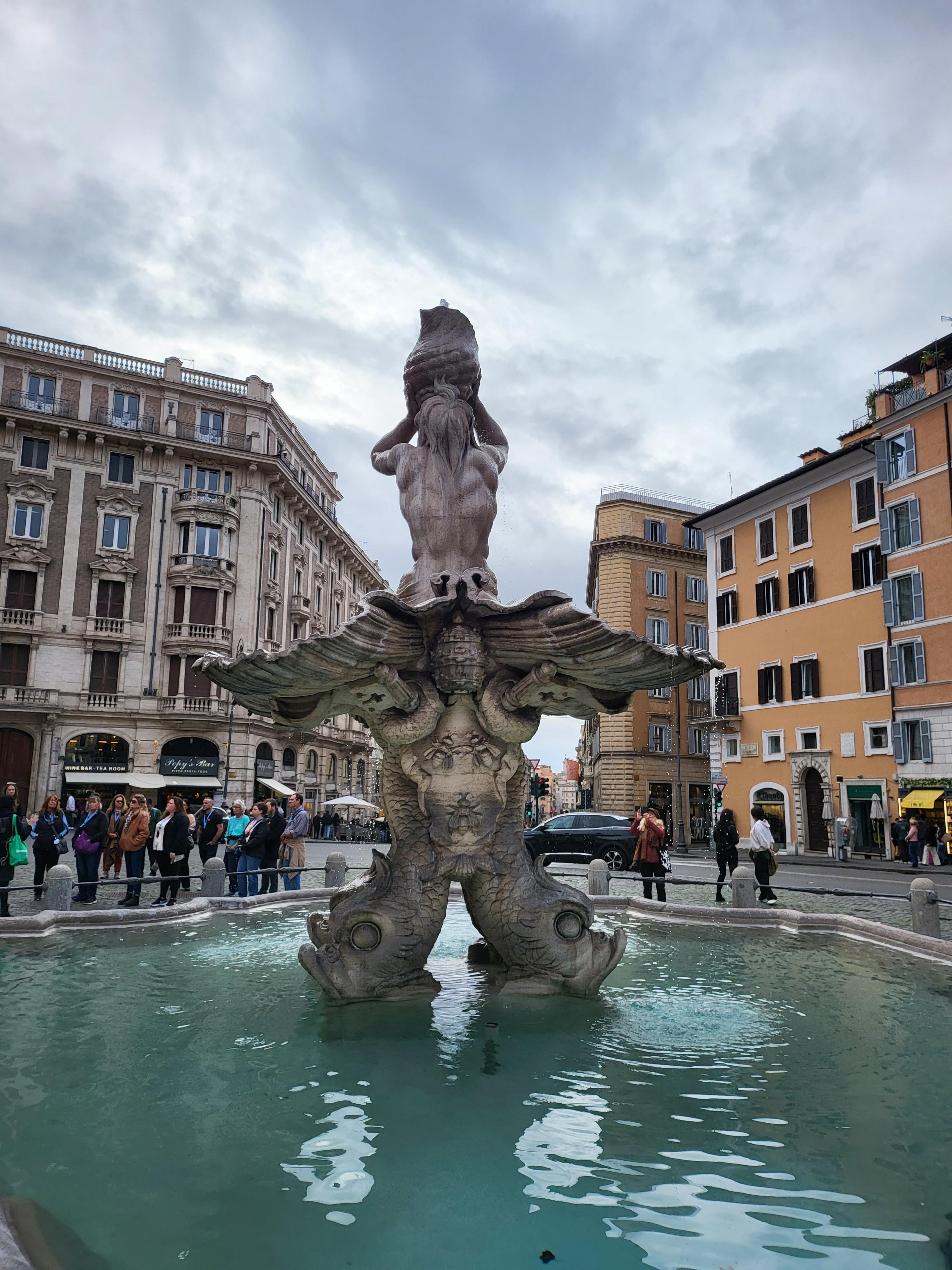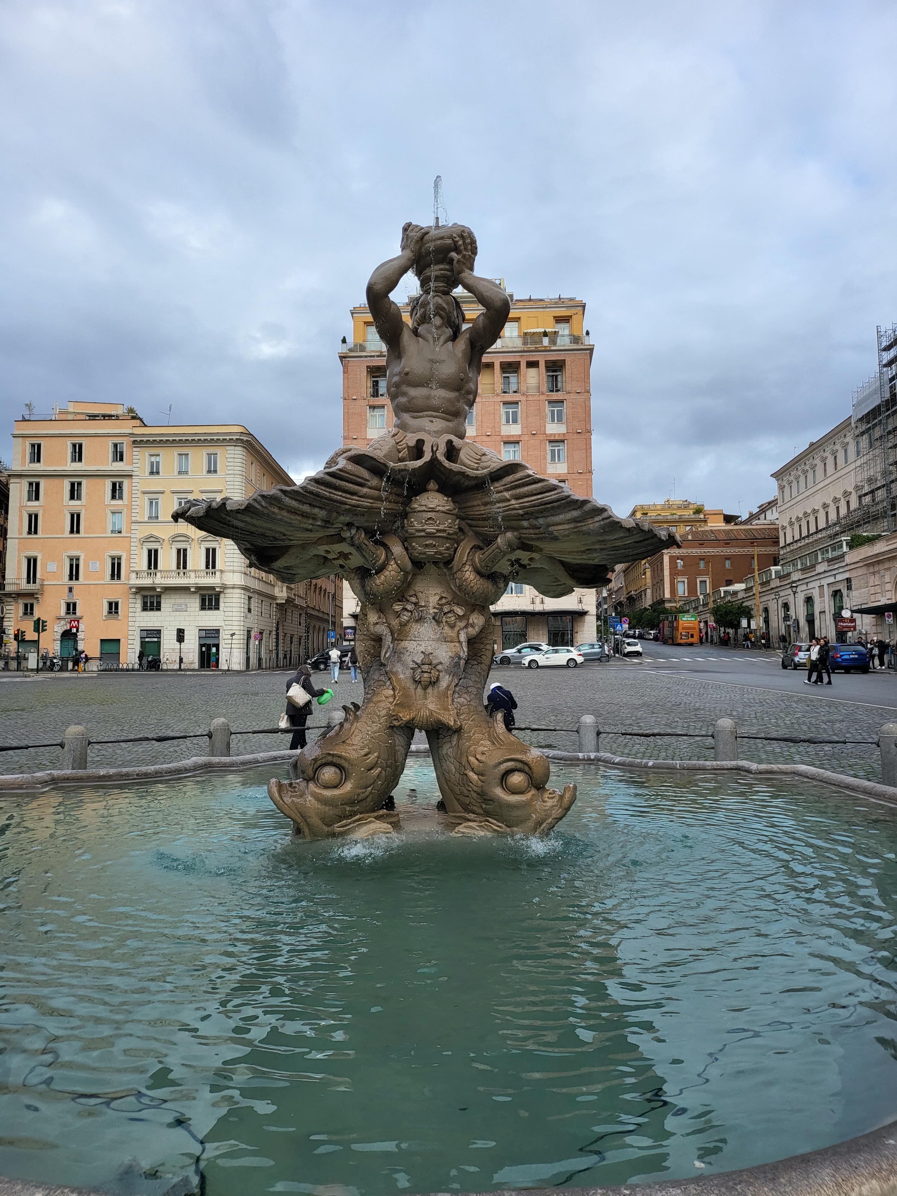 로마 중심 피아차 바르베리니 piazza Barberini 복판을 차지하는 이 분수대 님 성함은 라 폰타나 델 트리토네 La fontana del Tritone. 영어로는 Triton Fountain 이라 하는 모양이다.