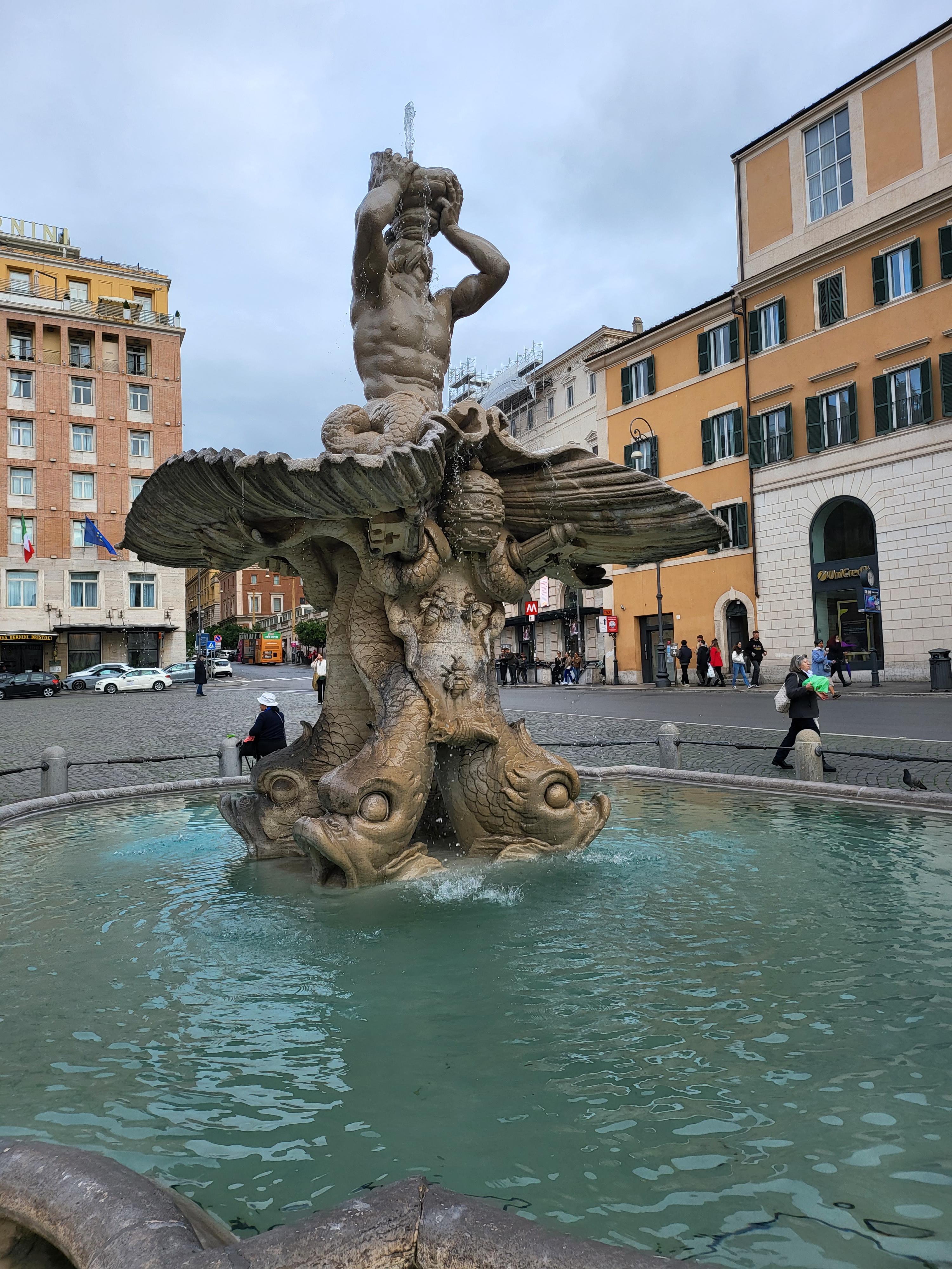 로마 중심 피아차 바르베리니 piazza Barberini 복판을 차지하는 이 분수대 님 성함은 라 폰타나 델 트리토네 La fontana del Tritone. 영어로는 Triton Fountain 이라 하는 모양이다.