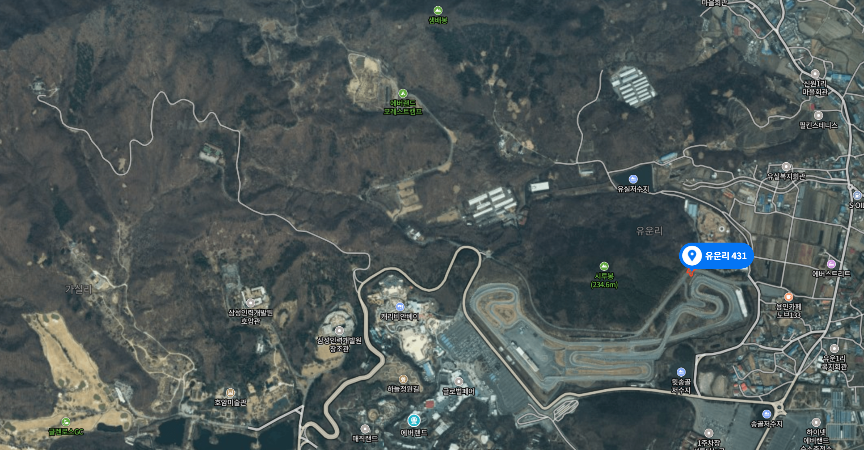 위치를 보면, 처인구 포곡읍 유운리 431번지 일원으로, 삼성화재 모빌리티뮤지엄(자동차박물관) 남쪽에 해당하는데, 지금은 에버랜드 스피드웨이 도로가 조성되었다.