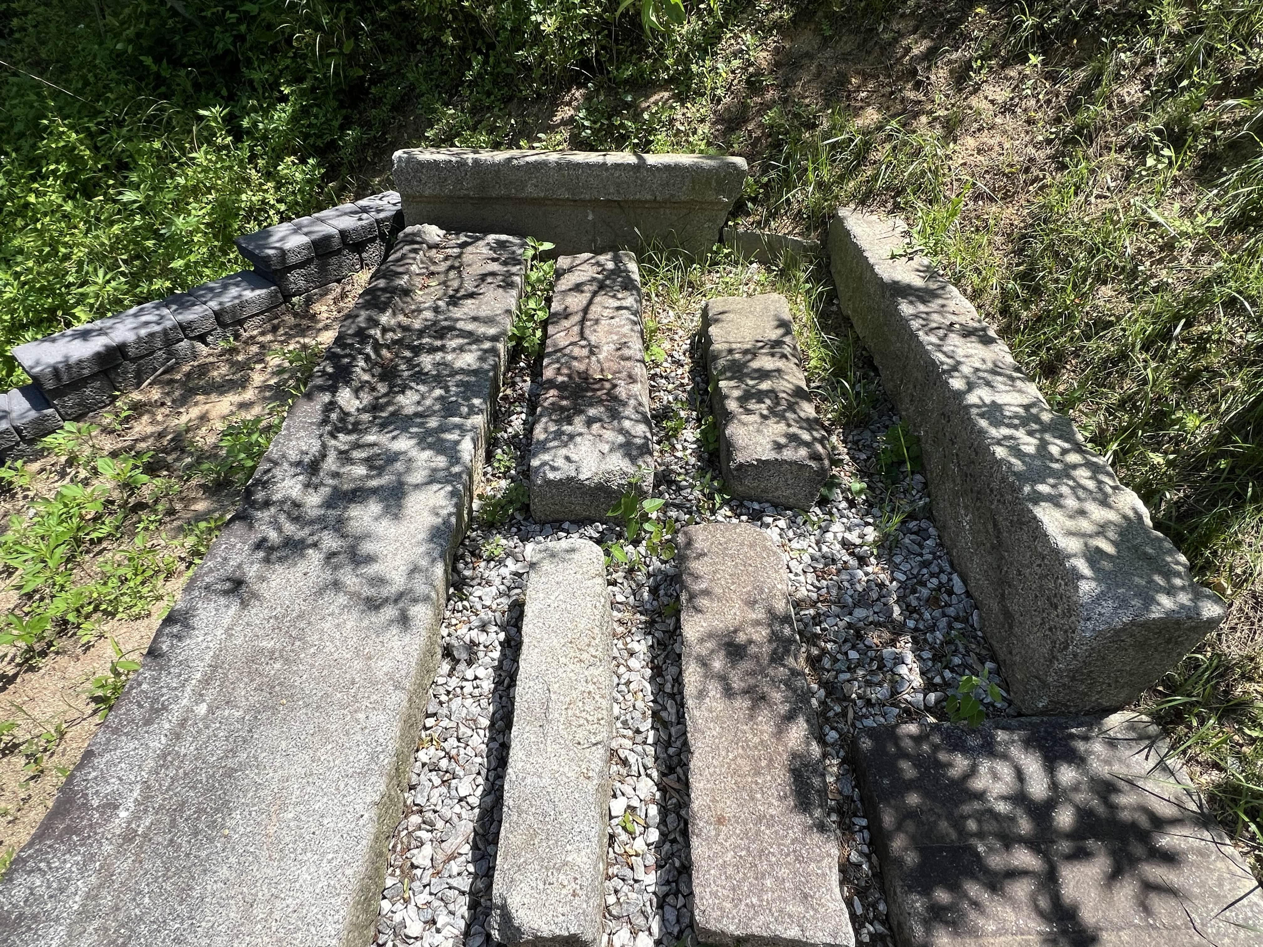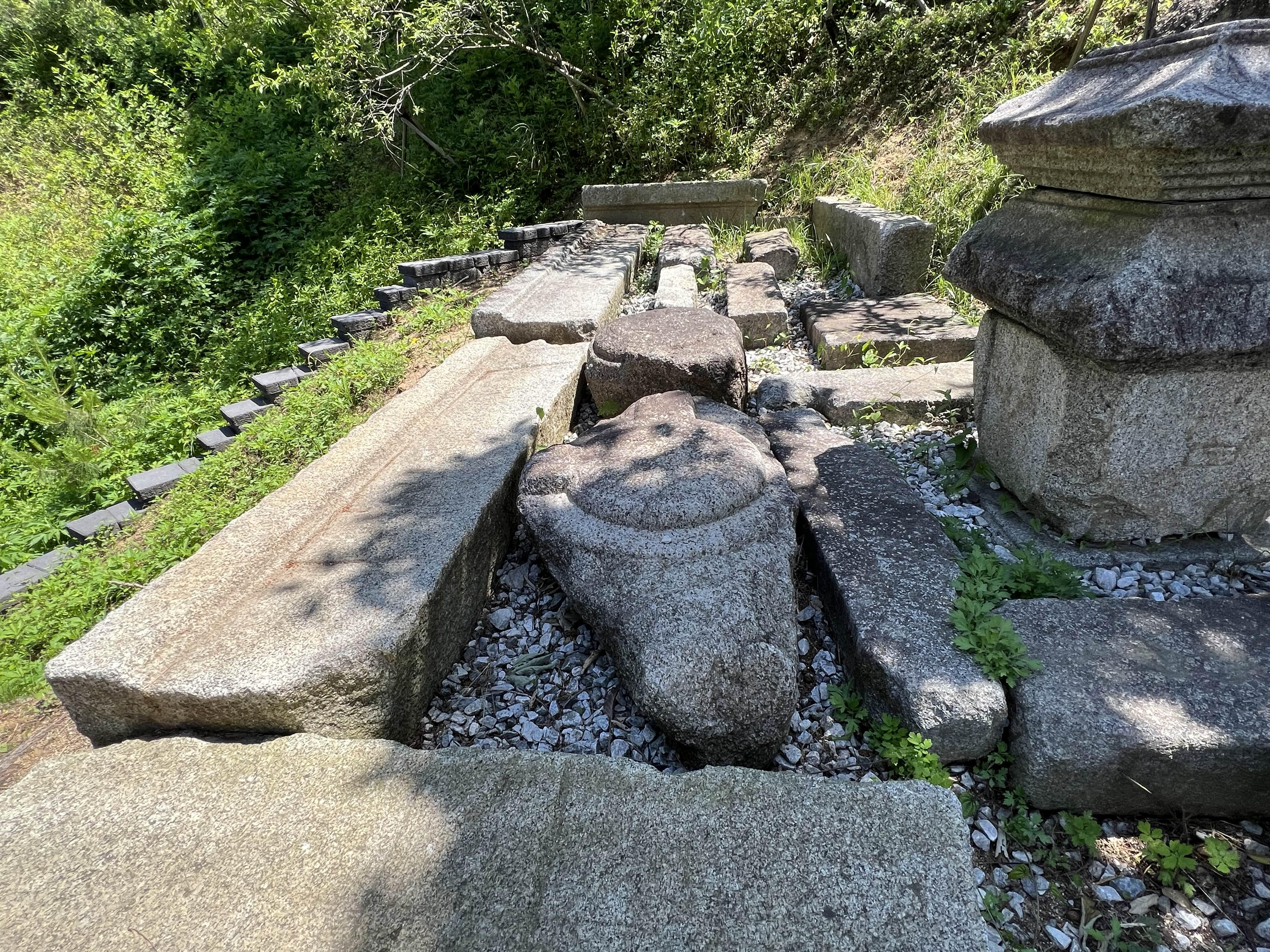 바로 잽싸게 뛰어 올라가서 확인해 보니, 석탑재와 초석 등 석조물이 그대로 옮겨져 있었다.