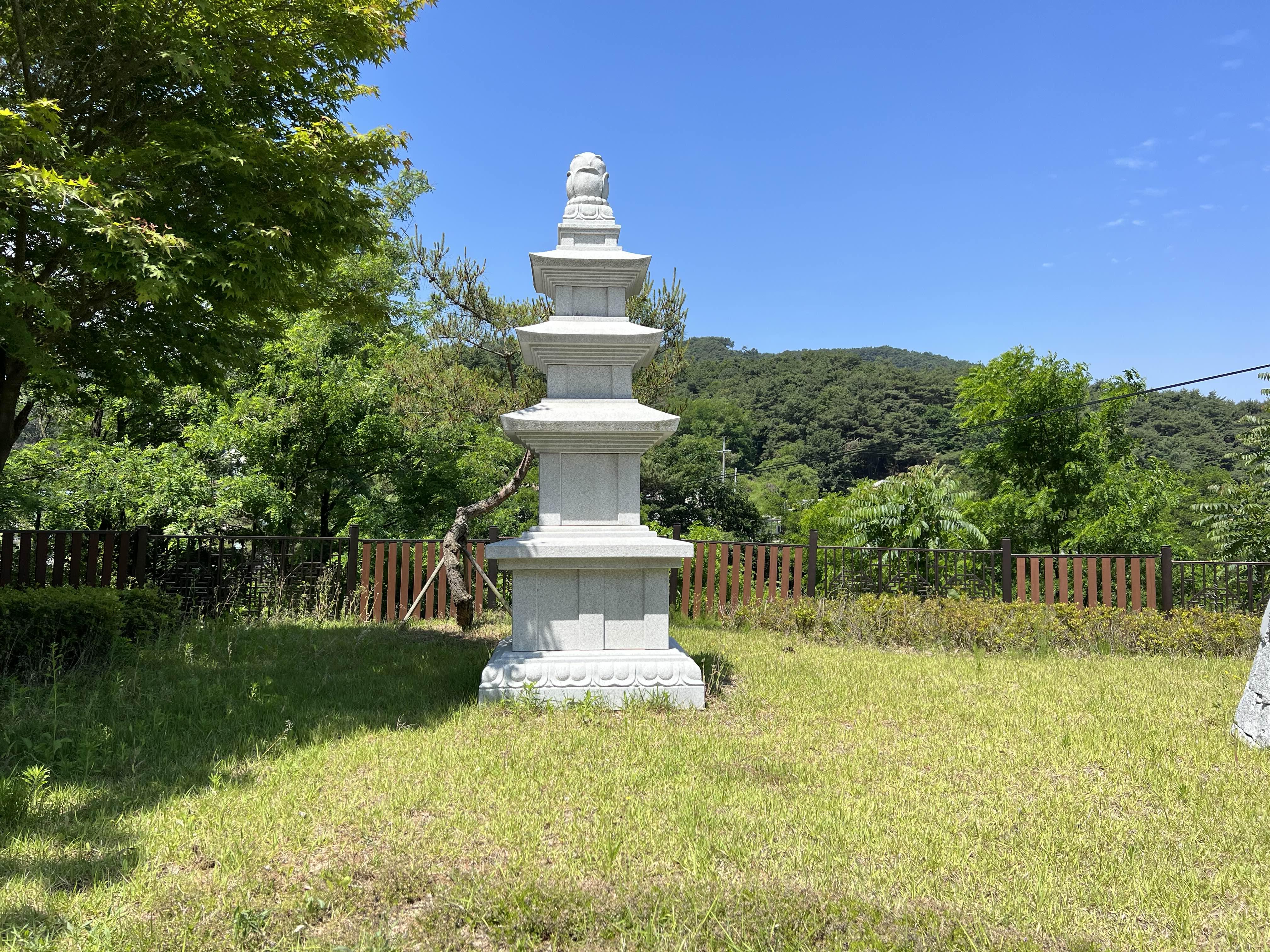 석탑은 3층이었을 것으로 생각되며, 지대석, 하층기단 면석과 상층기단 면석, 문비 자물쇠 조각이 남아 있는 탑신석, 복련이 새겨진 별석탑신받침 등이 남아 있다.