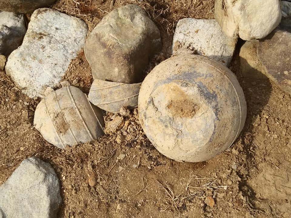 매장주체부가 노출됐고 호석열은 뚜렷하며 각종 고신라 토기 버글버글
