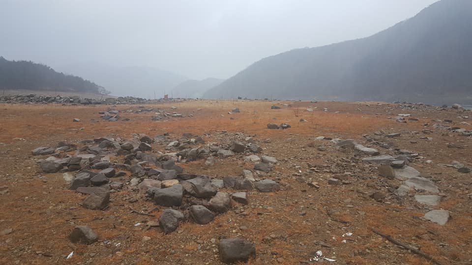 요약하면 5~6세기 신라 석곽묘 100여 기가 가뭄으로 물 마르자 모습 드러냈고, 수몰지역이어서 후속발굴에 당국이 고심한다는 내용이었다.