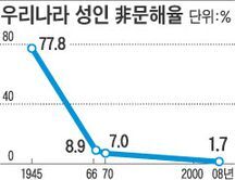 중요한 것은 60년대 중반부터의 경제개발은 저렇게 문해율이 올라간 국민이 출현하면서 비로소 가능해졌다는 것이다.