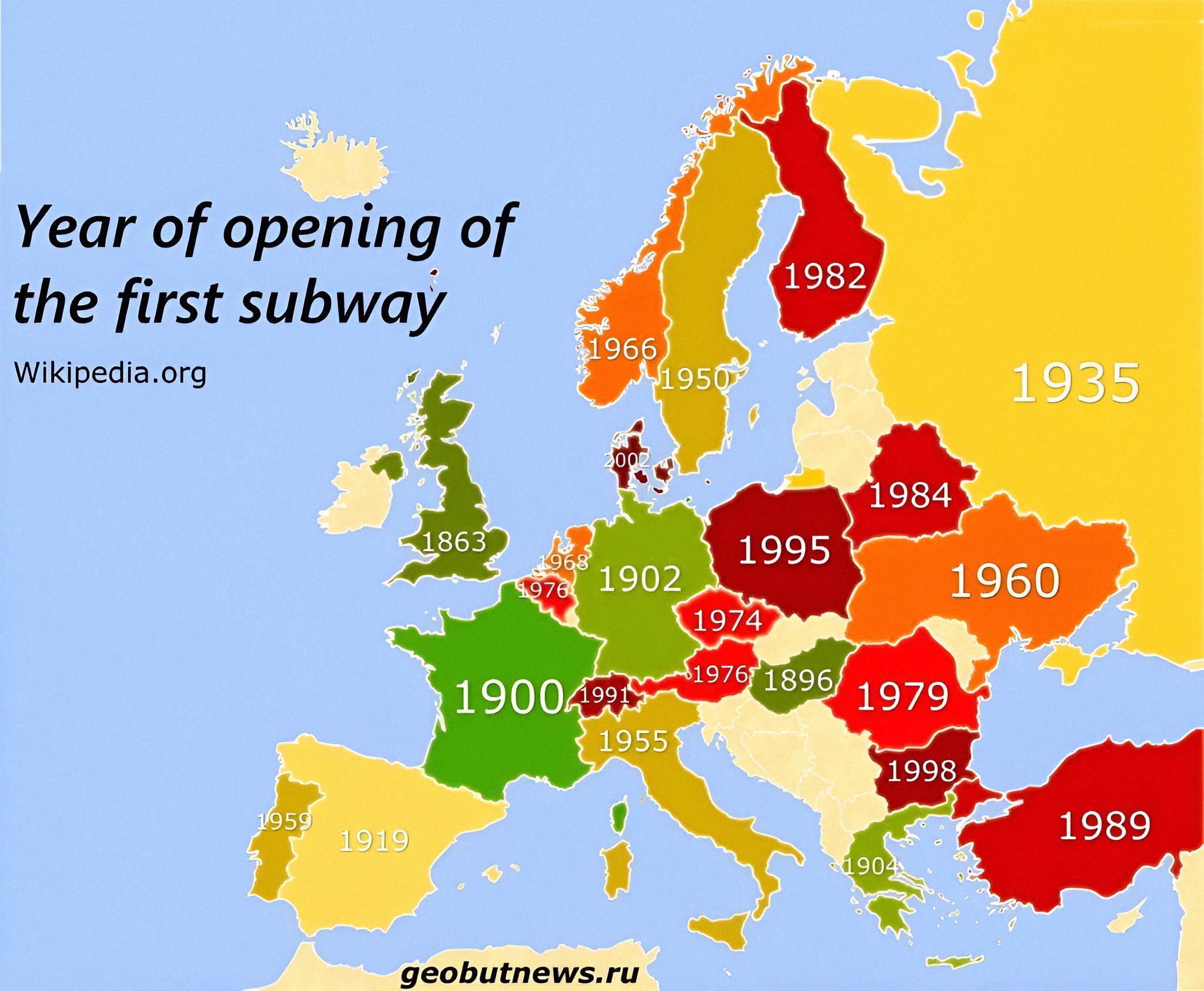 유럽에서 지하철 개통 시기가 이렇댄다.