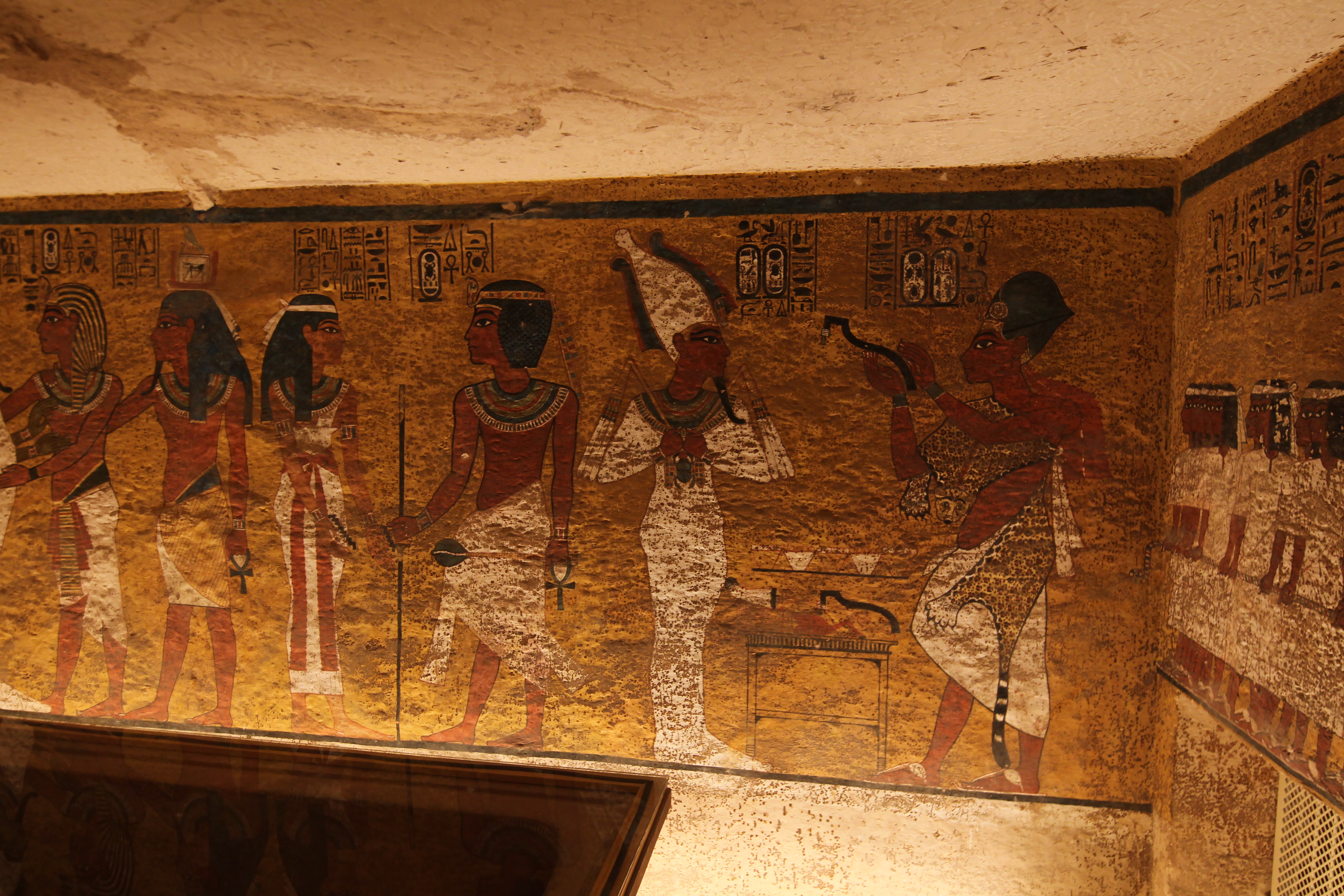 왕묘 저장고에는 황금과 각종 보석으로 제작된 값진 부장품만 아니라 향수·연고·수지·직물 그리고 포도주를 비롯해 실생활에 바로 사용할 만한 물품으로 가득 차 있었습니다. (“열려라 참깨”로 유명한 「알리바바와 40인의 도적」에 등장하는 보물로 가득 찬 동굴은 왕가의 계곡에 조성된 왕묘를 모티프로 한 것입니다. 실제로 도굴꾼들에게는 이들 왕묘가 보물로 가득 찬 동굴로 여겨졌을 것입니다.)