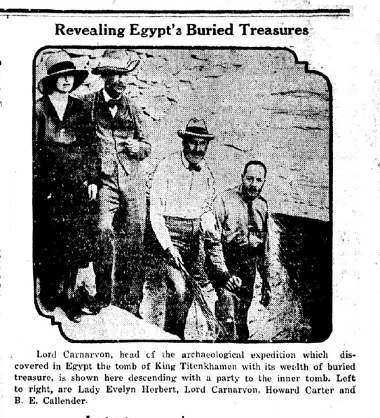 제5대 카나본 백작 조지 허버트(George Edward Stanhope Molyneux Herbert, Fifth Earl of Carnarvon: 1866-1923년) 경이 1923년 4월 5일 사망하기 약 한 달 전인 2월 28일에는 투탕카멘(Tutankhamun: 기원전 1336-1327년) 왕묘(KV