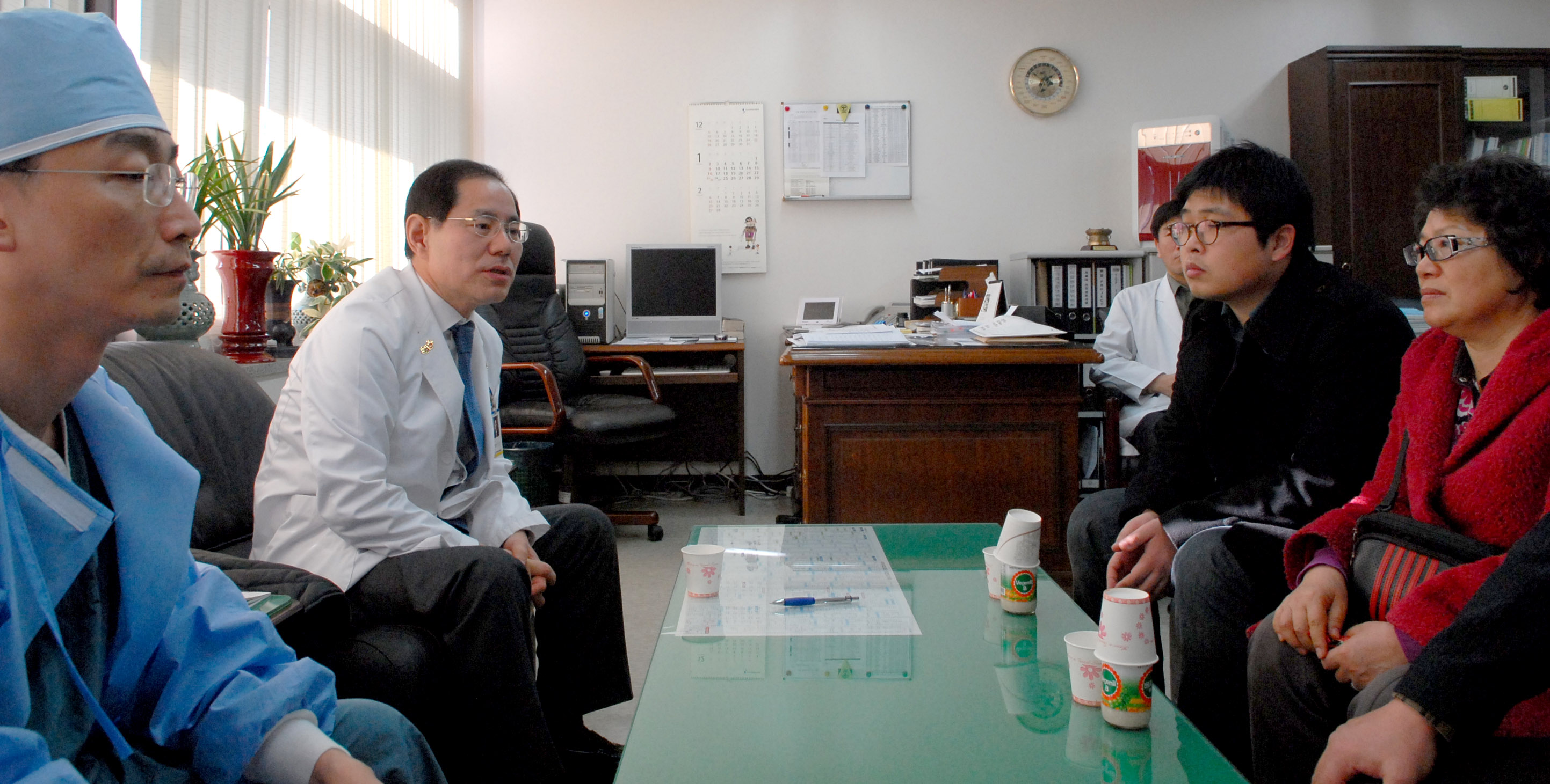 이는 아주대병원 수술직후 그 경과와 총상부위를 이 교수가 설명하는 장면이다.