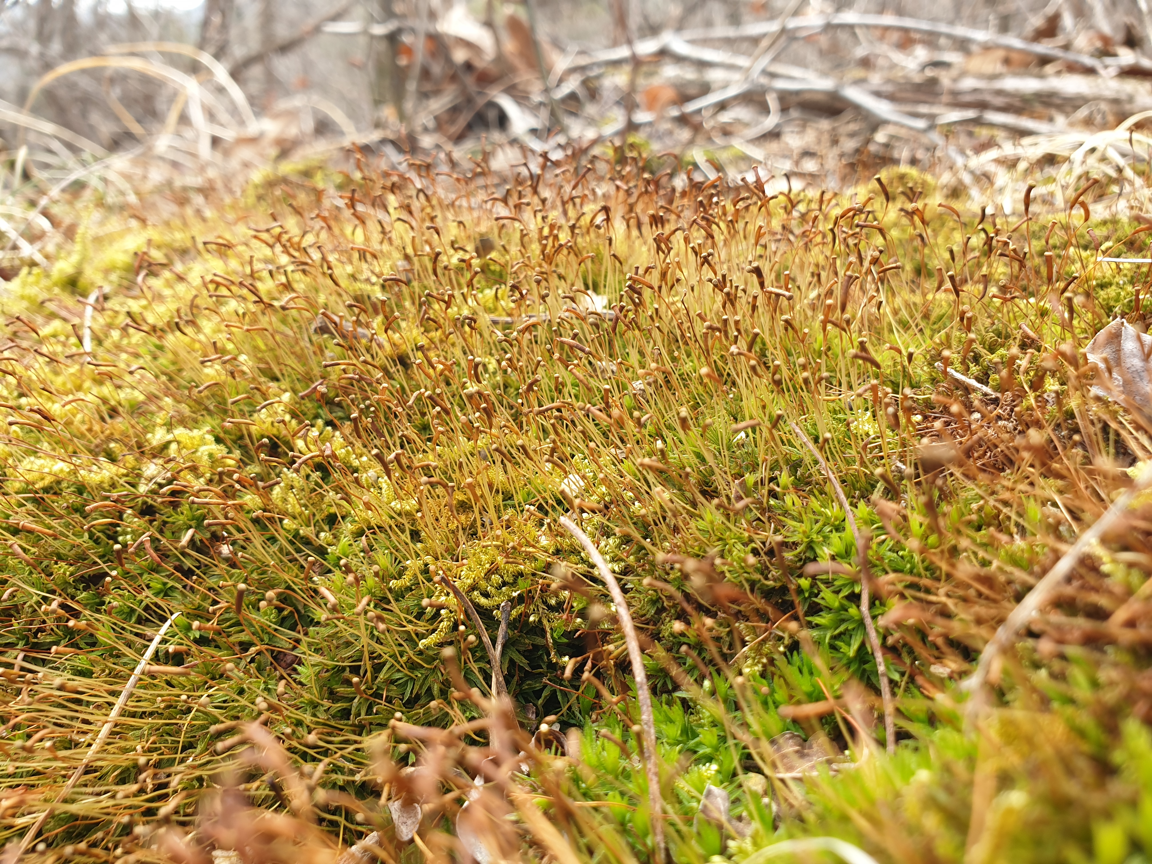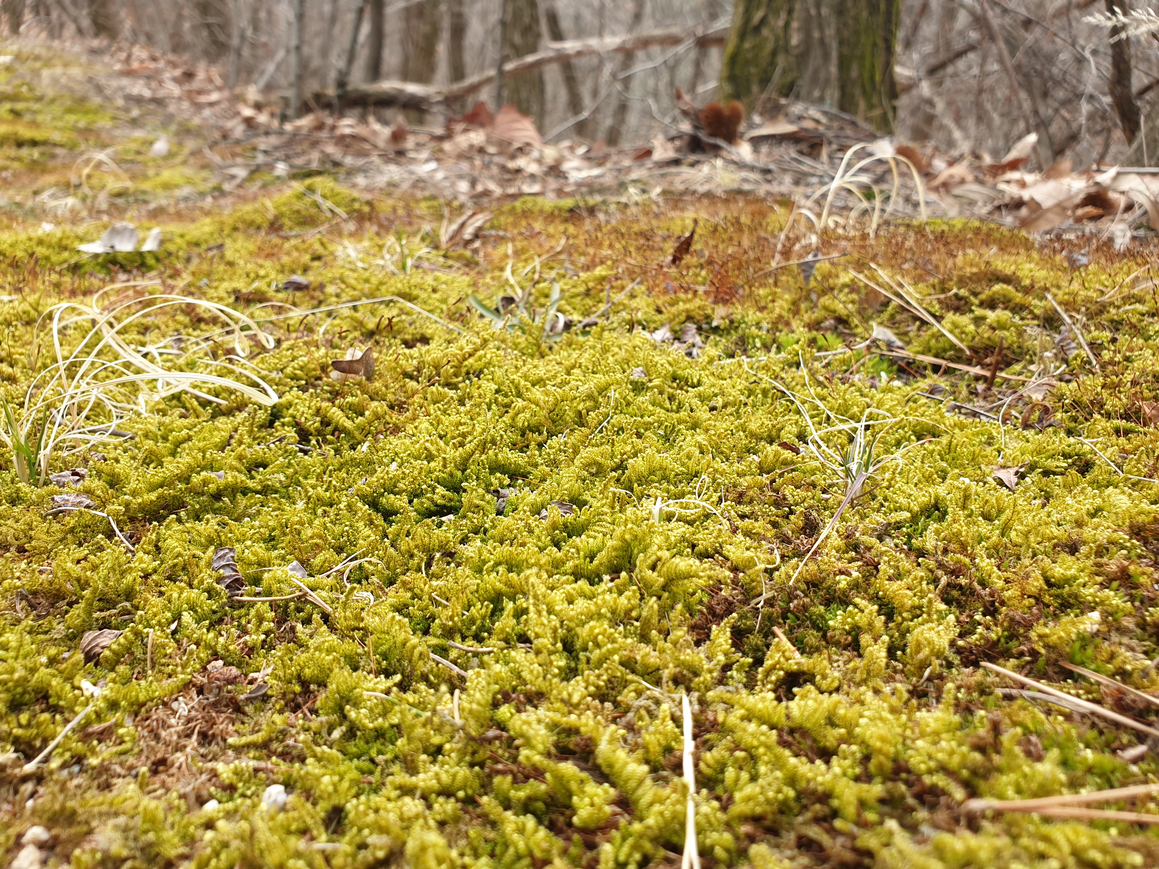 능선 오르는데 음지도 아닌 등산로 따라 이끼 연두 놀음 한창이라.