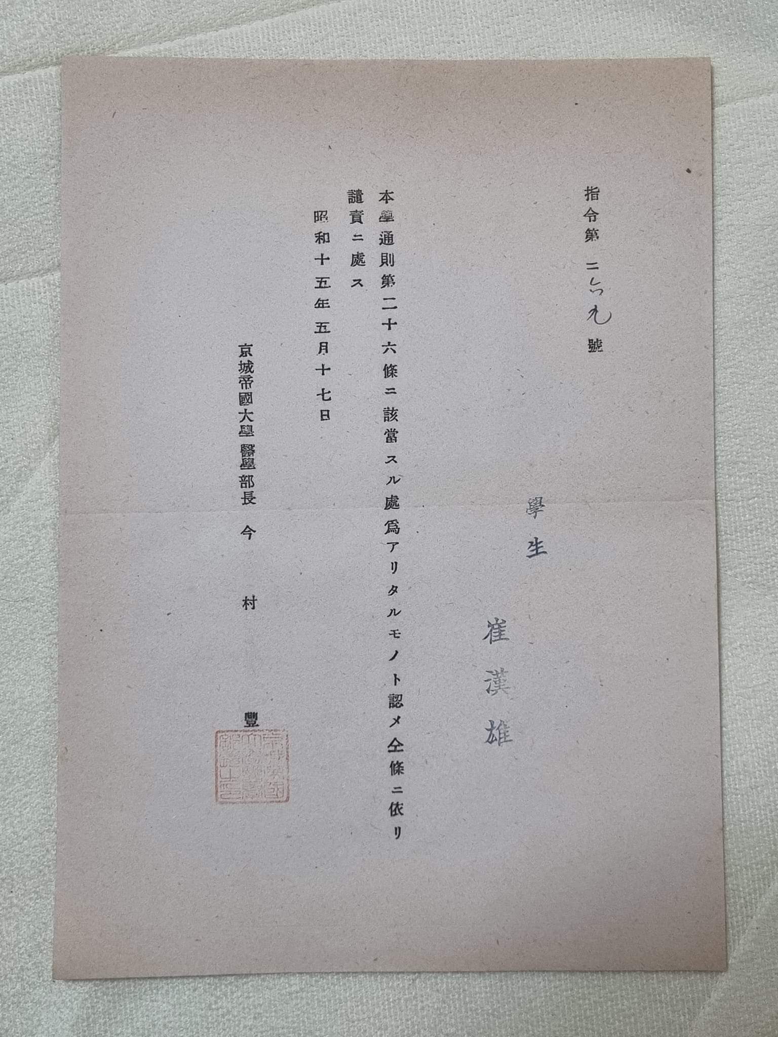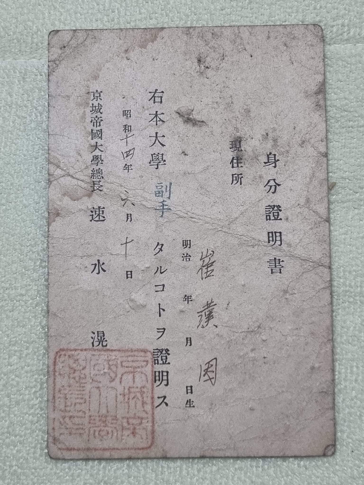 - 장남 한인(漢因) : 1915년 6월생 (1952년 7월 병사)